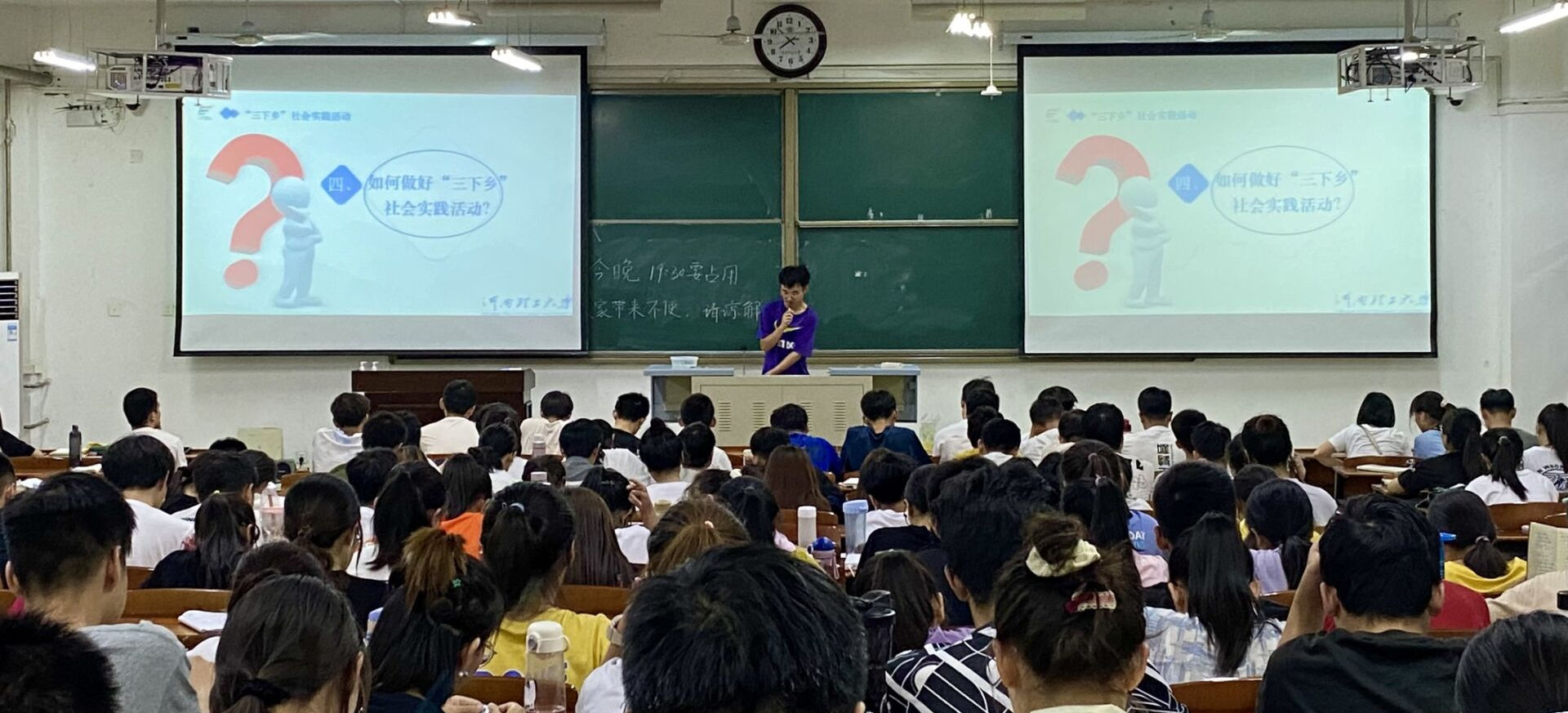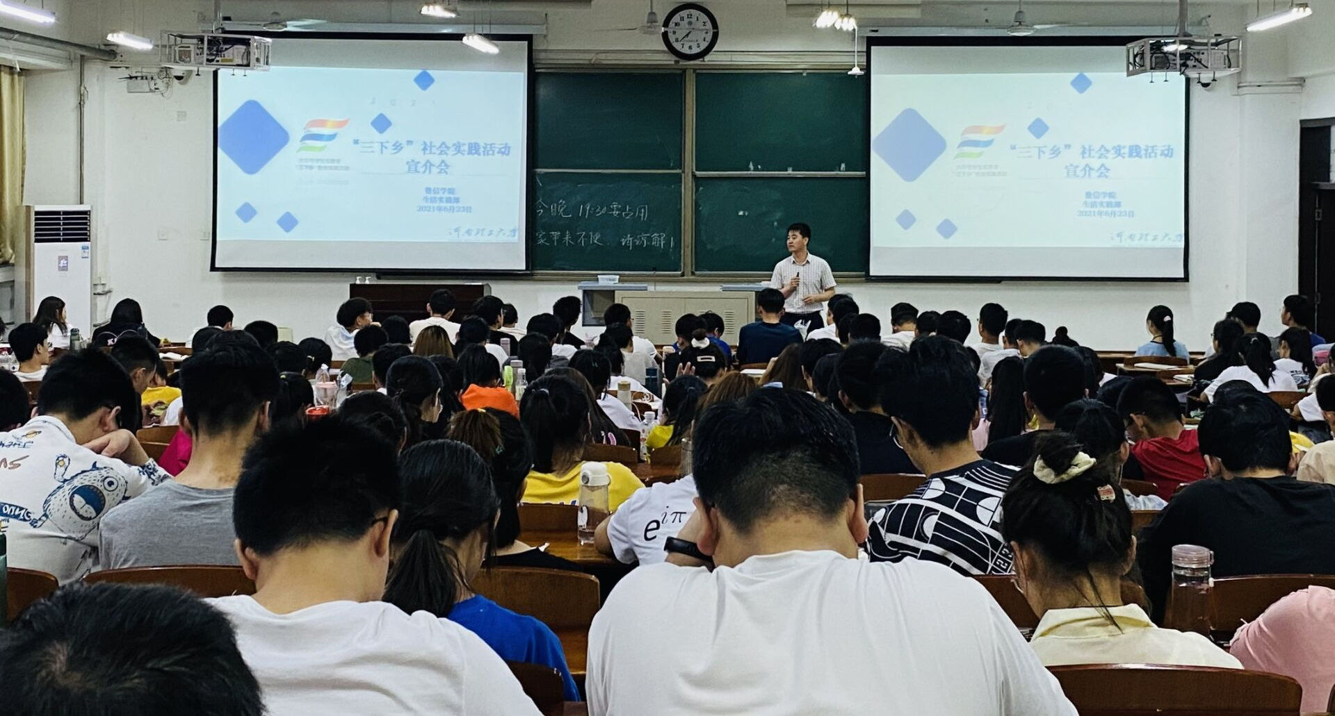 6月25日晚上,数信学院暑期“三下乡”社会实践活动宣介会在3102教室举办。学院党委副书记李伟亮、团委书记王孝华以及2020级全体同学参加本次宣介会。会议由学院学生会生活实践部副部长张亚鑫、李褔锟主讲。