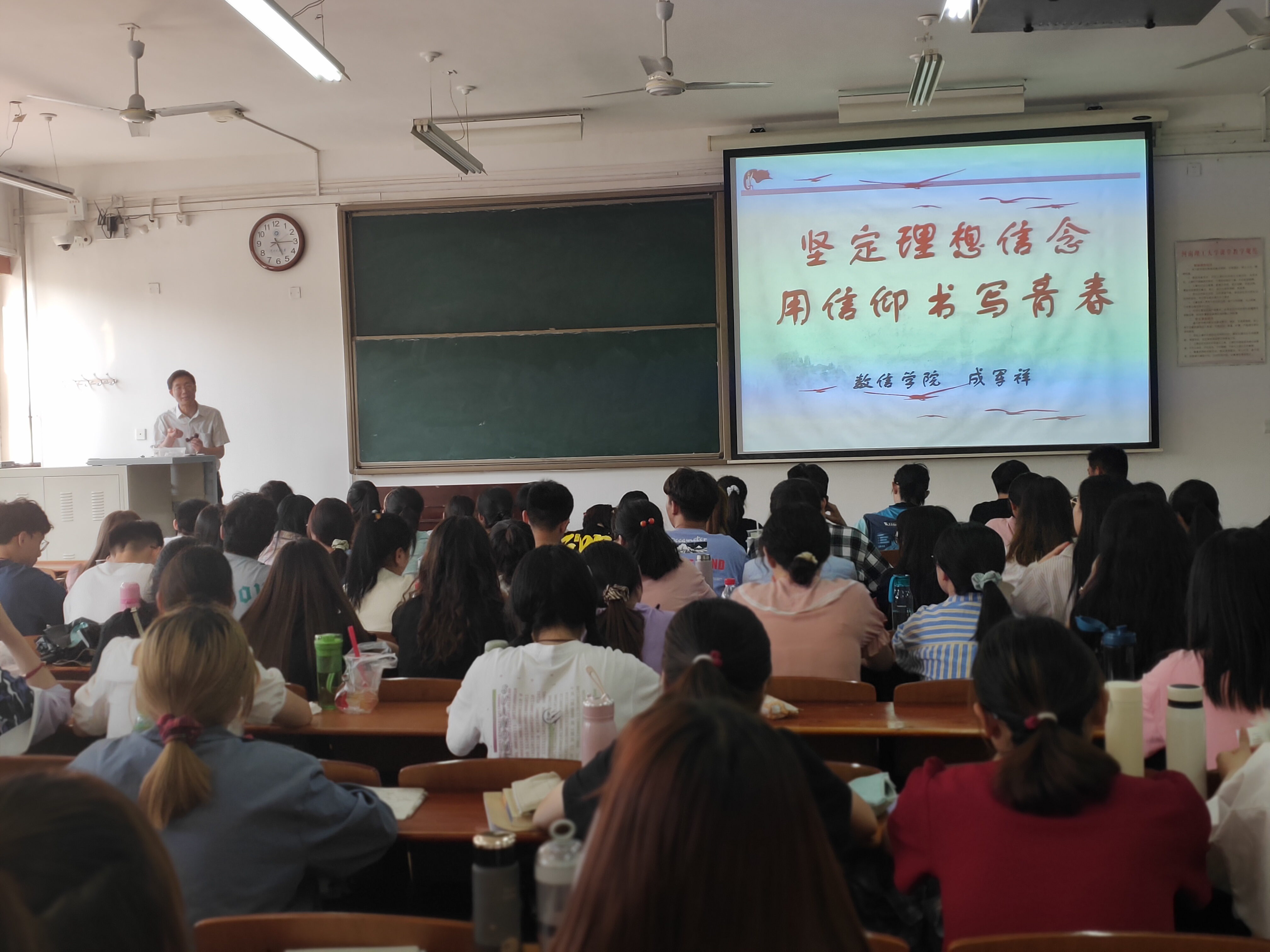 为进一步加强入党积极分子的教育和培训,根据校党委的有关要求和学院党委的计划安排,5月18日下午,数信学院2021年第一期入党积极分子培训班在3201教室正式开班,一百余名入党积极分子参加了本期培训。学院党委书记成军祥主持开班仪式并做了《坚定理想信念,用信仰书写青春》专题讲座。