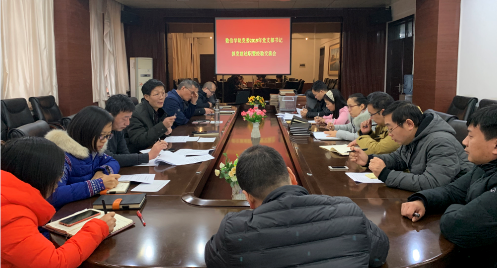 2019年12月25日上午,数信学院组织开展支部书记抓党建述职评议暨党建工作经验交流会,学院党委委员、支部委员及部分教师代表参加了会议,会议由学院党委书记成军祥主持。