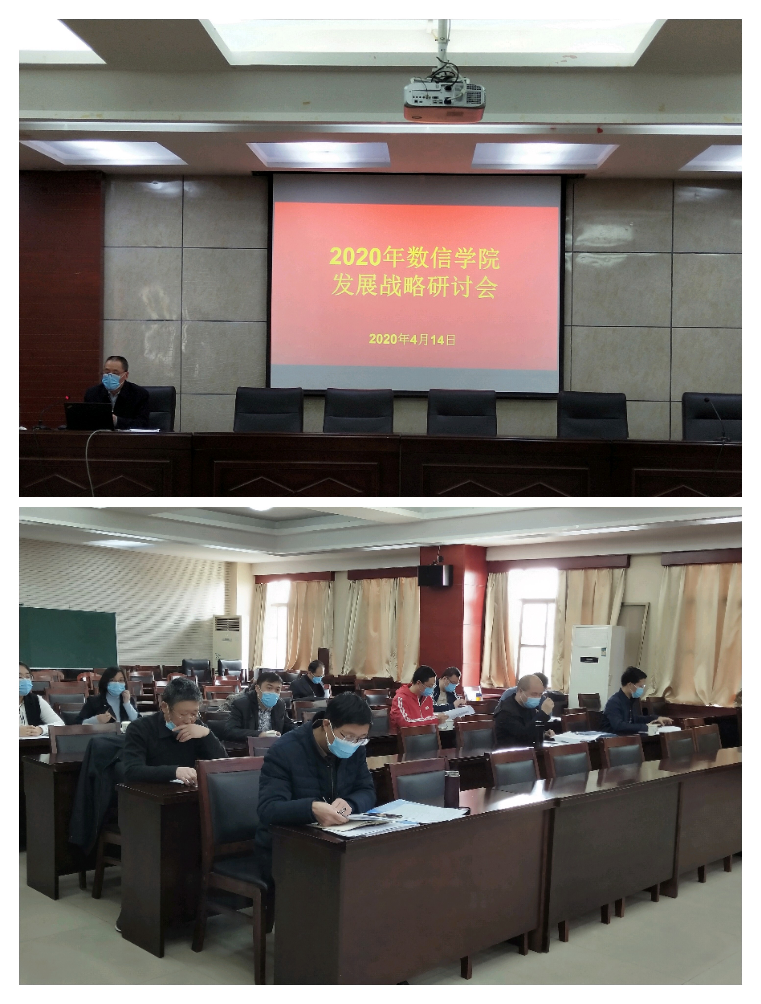 2020年4月14日,数学与信息科学学院召开2020年发展战略研讨会。会议围绕“学院2020年重点工作”根本任务,聚焦教学改革、学科建设、交流合作、行政运行等方面重点问题,在梳理总结2019年学院各方面发展情况的基础上,深入研讨学院未来发展战略及2020年工作计划,团聚人心、凝结共识,为学院下一阶段的改革发展奠定了坚实基础。党委书记成军祥、院长原保全、党委副书记沈立、副院长邓继恩、副院长姚绍文、副院长毋海根、各系(部、中心)主任、各科室负责人和部分教师代表近20余位教职员工参加会议。会议上半场由成军祥主持,下半场由邓继恩主持,会议最后的总结由原保全主持。