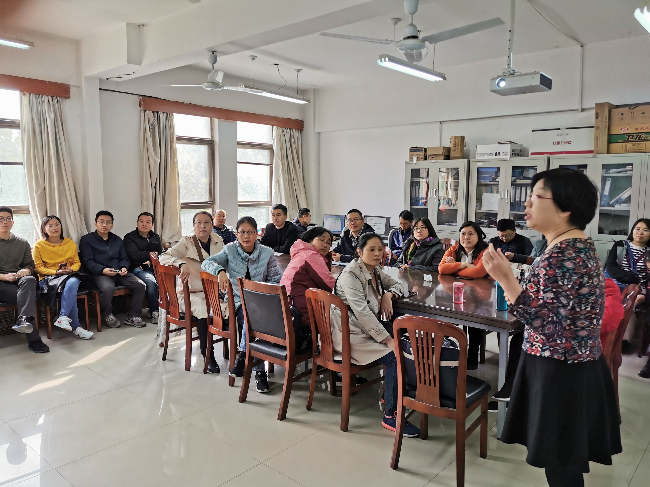 2019年10月15日下午,信息与计算科学系邀请太行名师姬玉荣副教授,为本系教师展示在公共数学教学方面的教学经验与部分最新成果。姬玉荣,中共党员,副教授,参与河南省教育厅和科技厅的项目2项,校内教改项目3项。主讲的课程有《高等代数》、《线性代数》、《高等数学》、《组合数学》、《图论》等。在教学中,学生评价连年优秀,每学期所带的学生成绩突出,获得2011河南理工大学教学竞赛“越崎杯”一等奖, 2012年获得河南理工大学“示范教师”称号,2018年评为河南理工大学二级太行名师。