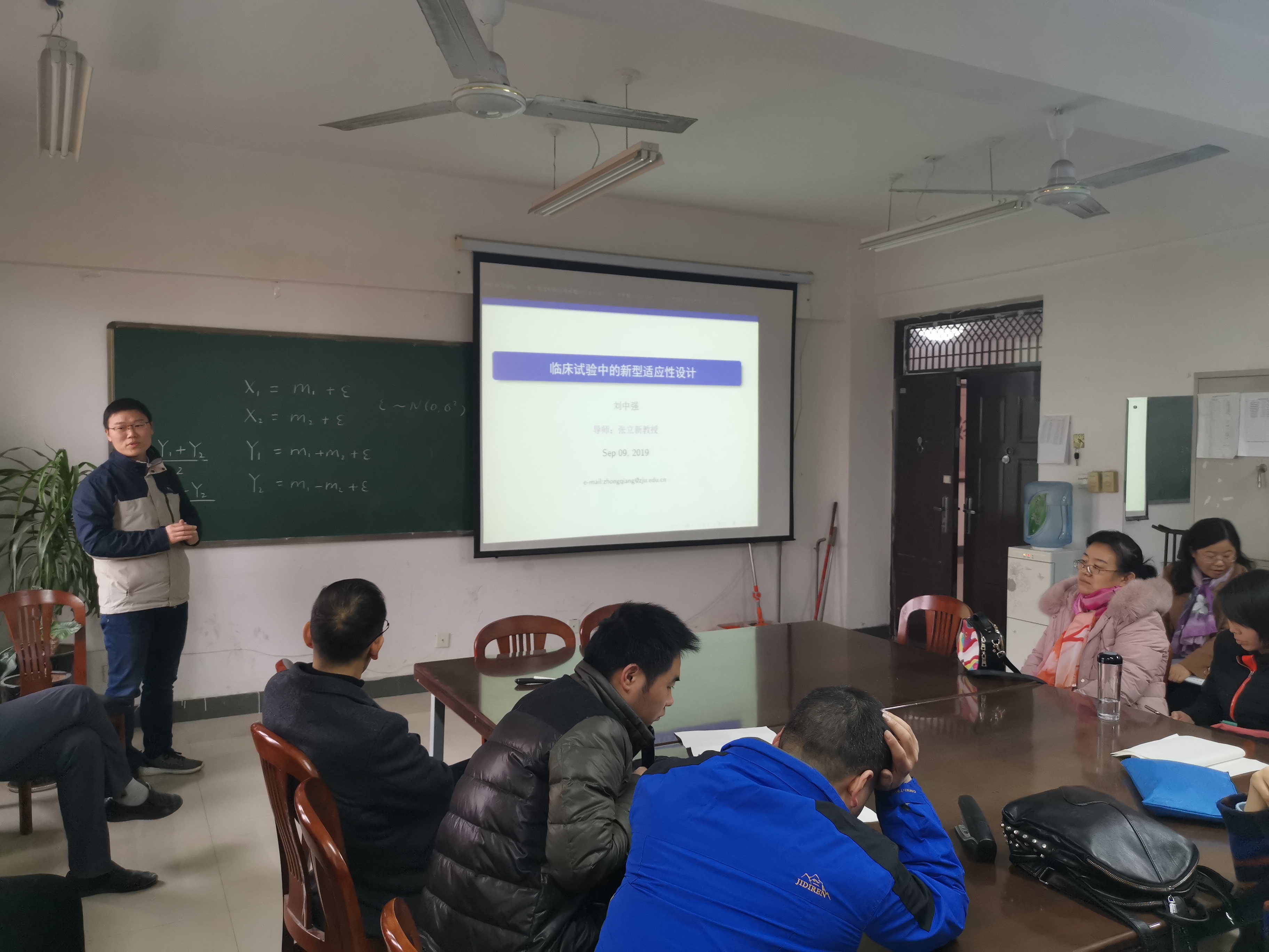 刘中强博士报告的题目为《临床试验中的新型适应性设计》。首先以一个简单的试验设计例子引入,说明为什么要进行试验设计。然后大概阐述了最近几年在临床试验设计方面所做的科研工作。最后,和大家深入探讨适应性随机化过程中及之后两个回归模型的比较。在任何临床试验中,除治疗效果之外都有我们感兴趣的协变量或预后因素。临床试验引入协变量的目的是找出病人对治疗的反应结果与其协变量之间的关系,而刻画这种关系的基本模型是线性模型。合适的模型不论对适应性设计本身还是对试验结束时之后的统计推断都是非常重要的。在前人的研究中,有两种回归模型常被用来刻画病人反应变量和协变量之间的关系,然而,这两类模型通常都是被单独研究。刘中强所做的主要工作是在临床试验的过程中和过程之后比较这两类模型的优缺点。在试验过程这建立不同的分配比例函数,在试验结束后调用不同的假设检验方法,并用数值模拟的方法对比了两种检验方法。另外,证明了过程对应的极限分配比例是奈曼分配的推广。