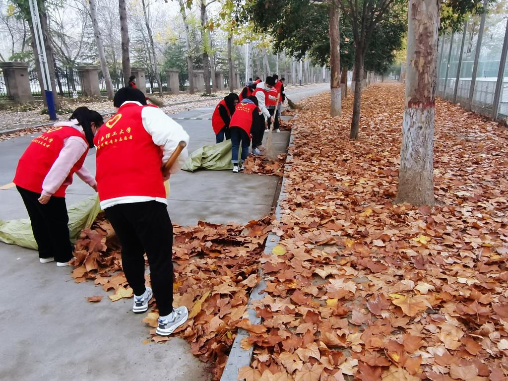 11月20日下午,学院2020级本科生和研究生全体党员及青年志愿者在学院楼前集合,整装待发。在院党委副书记王明中进行活动安排动员后,党员和志愿者们携带好劳动工具前往维洁地点。在劳动过程中,大家铆足干劲,分工合作,不怕脏不怕累,以饱满的热情有条不紊地投入到维洁活动中。没过多久,原本堆积满落叶的道路变得焕然一新。身穿红色志愿服的同学们躬身劳动的身影成为校园里亮丽的风景线,党日志愿活动有序进行,还得到了校巡视组领导的表扬鼓励。