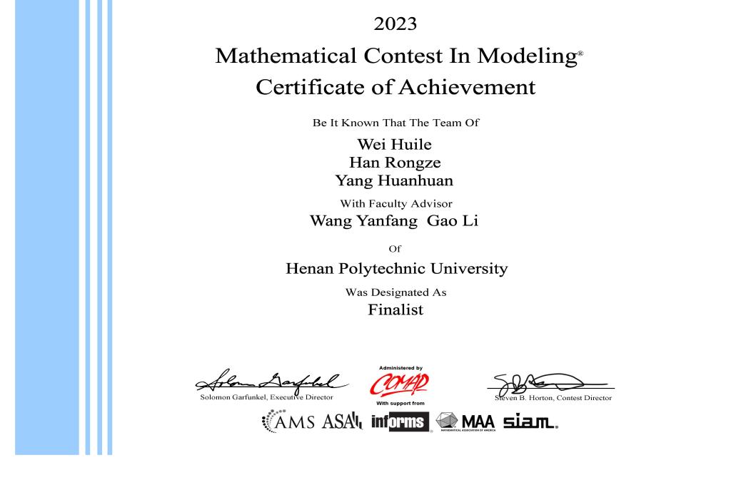近日,2023年国际大学生数学建模竞赛和交叉学科建模竞赛(MCM/ICM)成绩揭晓,我校学子获特等提名奖(Finalist)3项、一等奖(Meritorious Winner)2项、二等奖(Honorable Mention)15项。