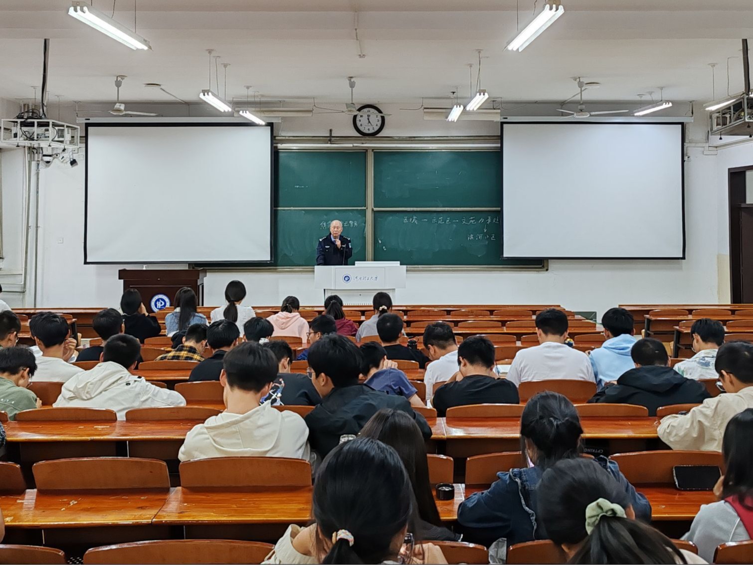 作为在警察战线坚守多年的老民警,徐警官具有非常丰富的实际工作经验。他结合真实具体的案例,向大家介绍了被诈骗后带来的诸多不良后果,甚至有学生付出了生命的代价。他详细普及了当前多种电信网络诈骗的诈骗手段及预防措施,重点介绍了以学生群体为主要作案目标的刷单返利、直播打赏、游戏充值等诈骗形式。根据日常办理的涉“两卡”犯罪案件开展普法教育,警示学生不要为贪图蝇头小利而向不法人员提供手机卡、银行卡等,防止成为电信网络诈骗犯罪的“帮凶”,情节严重同时要承担一定的刑事责任。他告诫学生,如确需兼职赚取生活费,一定要通过正规的渠道进行勤工助学,谨防一些兼职群或黑中介从中获取不当利益。最后,徐警官提醒学生,当自身的合法权益受到侵犯或个人财产遭受损失时,一定要及时报警,万不可企图和不法分子斗智斗勇挽回损失,或许会造成二次伤害。