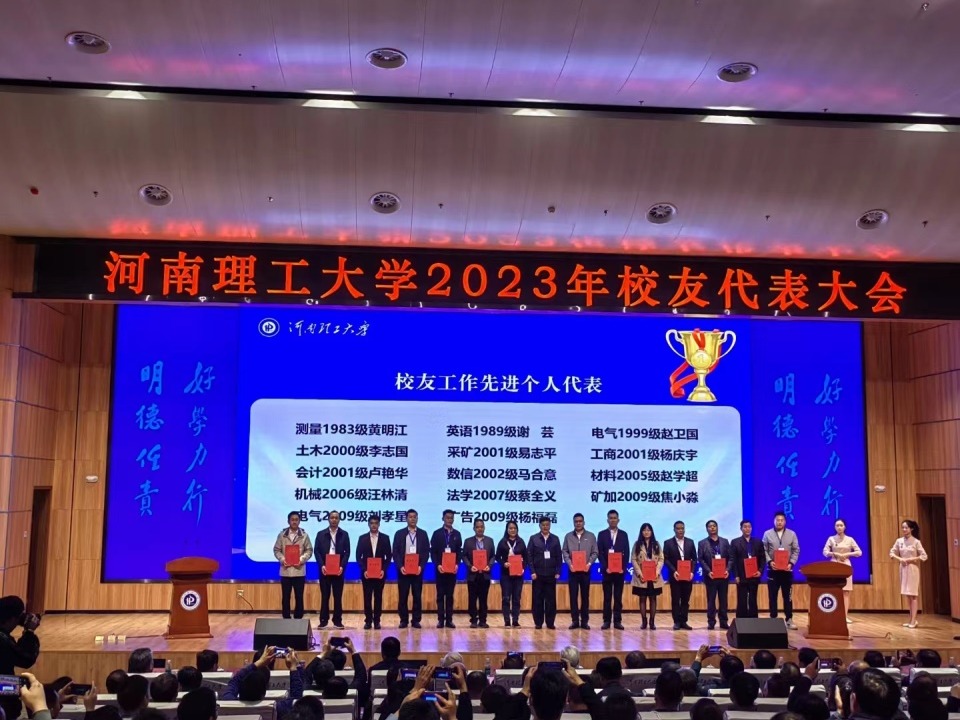 据悉,在校友代表大会上,马合意校友被授予“河南理工大学校友工作先进个人”,并上台接受校长杨小林颁奖。李广超校友所在企业与学校有关单位签订了战略合作协议,并在校开展了人才招聘宣讲活动。