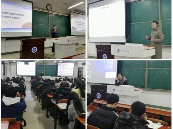 会上,各系部负责人和教师代表简要介绍了数学与应用数学、信息与计算科学、统计学等专业方向的基本情况、培养目标、课程设置、特色优势、就业发展等。刘中强建议同学们要静下心来好好学习,打好数学基础,在学习过程中逐渐发现和培养个人兴趣,形成自己强大的能量场。尽早规划好自己的专业方向,为未来就业提前谋划。刘杰分两篇进行介绍,首先是数学与应用数学专业介绍篇,就数学与应用数学的专业设置、培养目标、教学安排等方面向同学们做了详细介绍。其次是考研篇,他建议同学们要根据自己的兴趣和求职意向确定考研的学校专业研究方向,并通过举例详细介绍了部分大学的考试科目,有利于同学们更好的选择专业。周玲玲强调,同学们要根据自己的兴趣和优势来选择专业,为今后发展打好基础。张永金从信息与计算科学简介引入,阐述了学科门类、培养目标与就业方向比较,通过有趣鲜活的应用举例,以及学长寄语短视频引来了同学们的阵阵掌声,从中激发了同学们学习本专业的兴趣,也坚定了对未来就业前景的信心,张老师最后寄语:前进的方向与努力的程度同样重要,愿大家找准方向,努力拼搏,不负韶华!