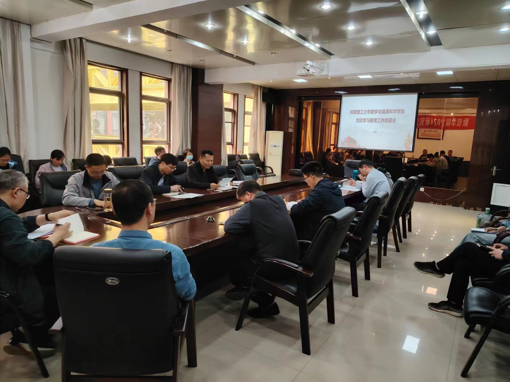 本网讯(通讯员 王璐璐)4月16日,数信学院党委在该院211会议室召开扩大会议,学习贯彻习近平总书记关于党纪学习教育的重要讲话和重要指示精神,对学院党纪学习教育工作进行安排部署。该院党委委员、非党员处级领导、支部书记和支部委员参加会议。会议由该院党委副书记王明中主持。