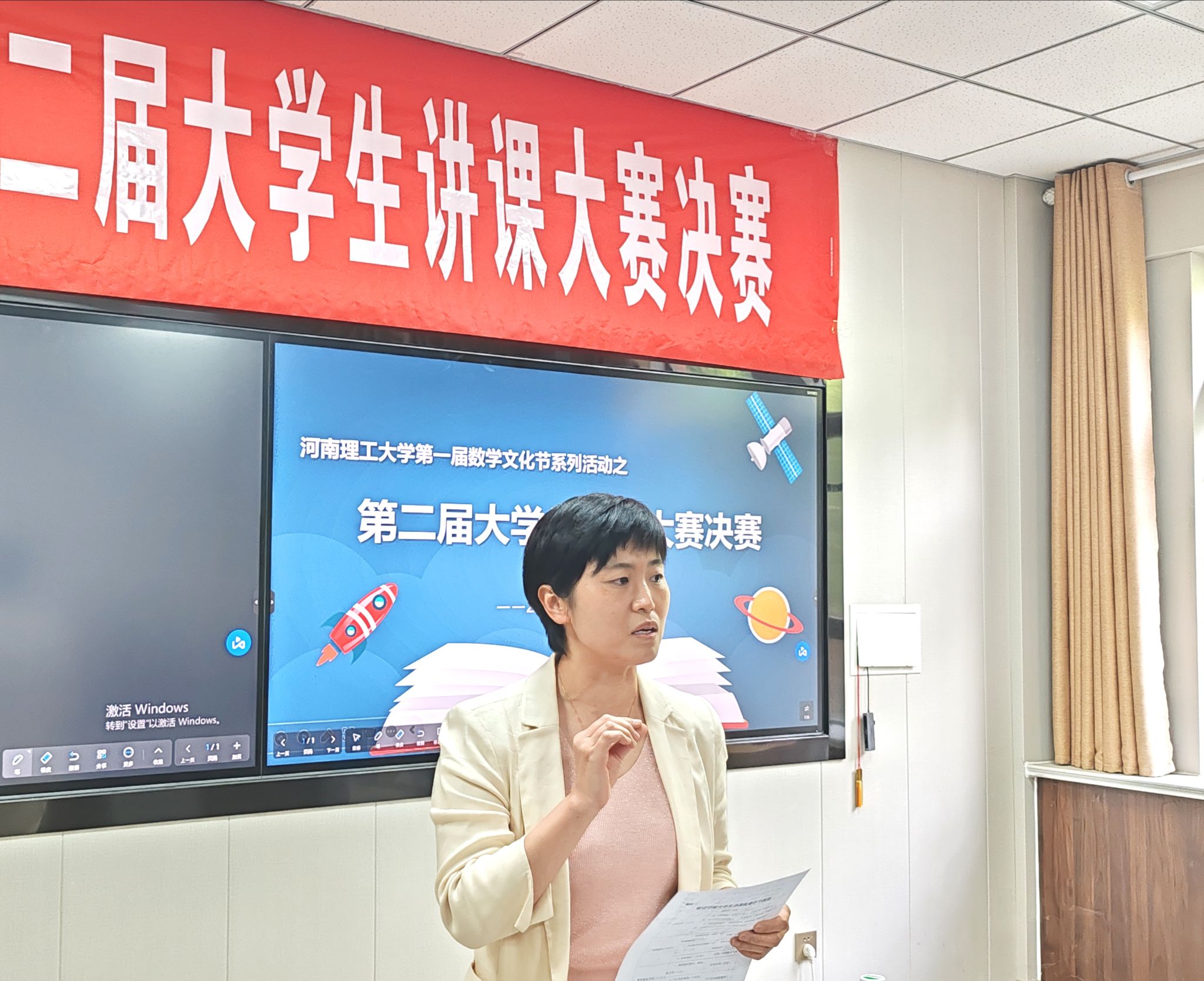 讲课大赛决赛包括学生讲课和现场问答两个环节。8名学生按照抽签顺序,依次上台进行讲课,就相关数学知识进行讲解,讲课内容包含函数、几何、集合等方面。讲课过程中,学生们逻辑清晰地对PPT上的内容进行细心讲解,期间还积极地与台下学生进行互动,真实还原教学课堂。现场问答环节,选手根据评委老师提问的问题进行阐释,评委老师根据学生的回答认真点评。比赛结束后,河南省优秀教学标兵、数信学院副教授王丽对本次学生讲课大赛作了点评。最终,马浩洋同学获得一等奖,王旭等2名同学获得二等奖,刘健康等5名同学获得三等奖。