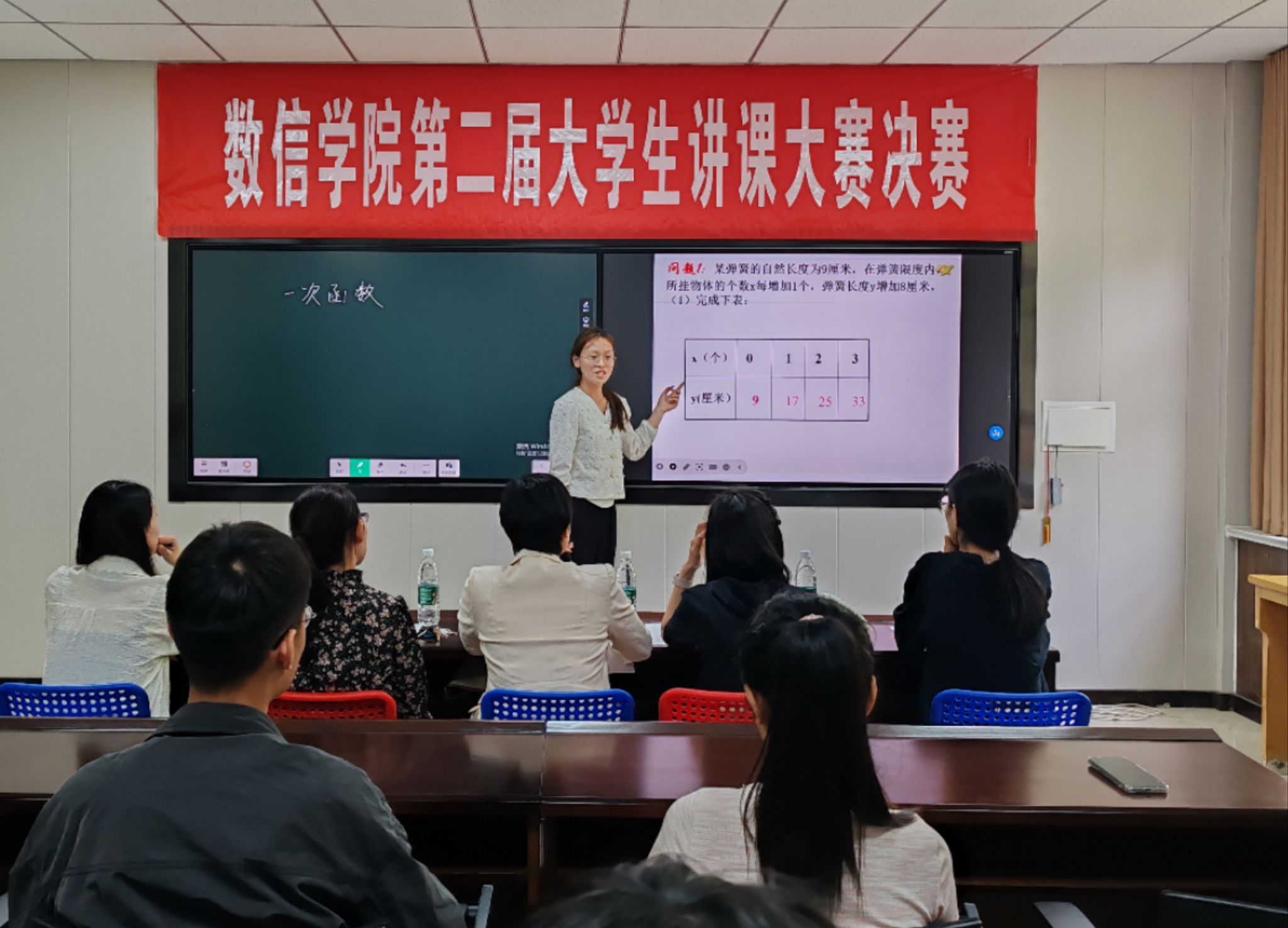本网讯(通讯员 王妍 张岳丽)为帮助大学生掌握讲课技能,提高教学基本素质和能力,拓宽就业选择途径,提高他们的职场竞争力,5月12日下午,数信学院在学院305智慧教室举办第二届大学生讲课大赛决赛。学院专业课老师王丽、姚莎,学生处老师赵慧和优秀学生代表管锋彬、胡静怡担任评委。