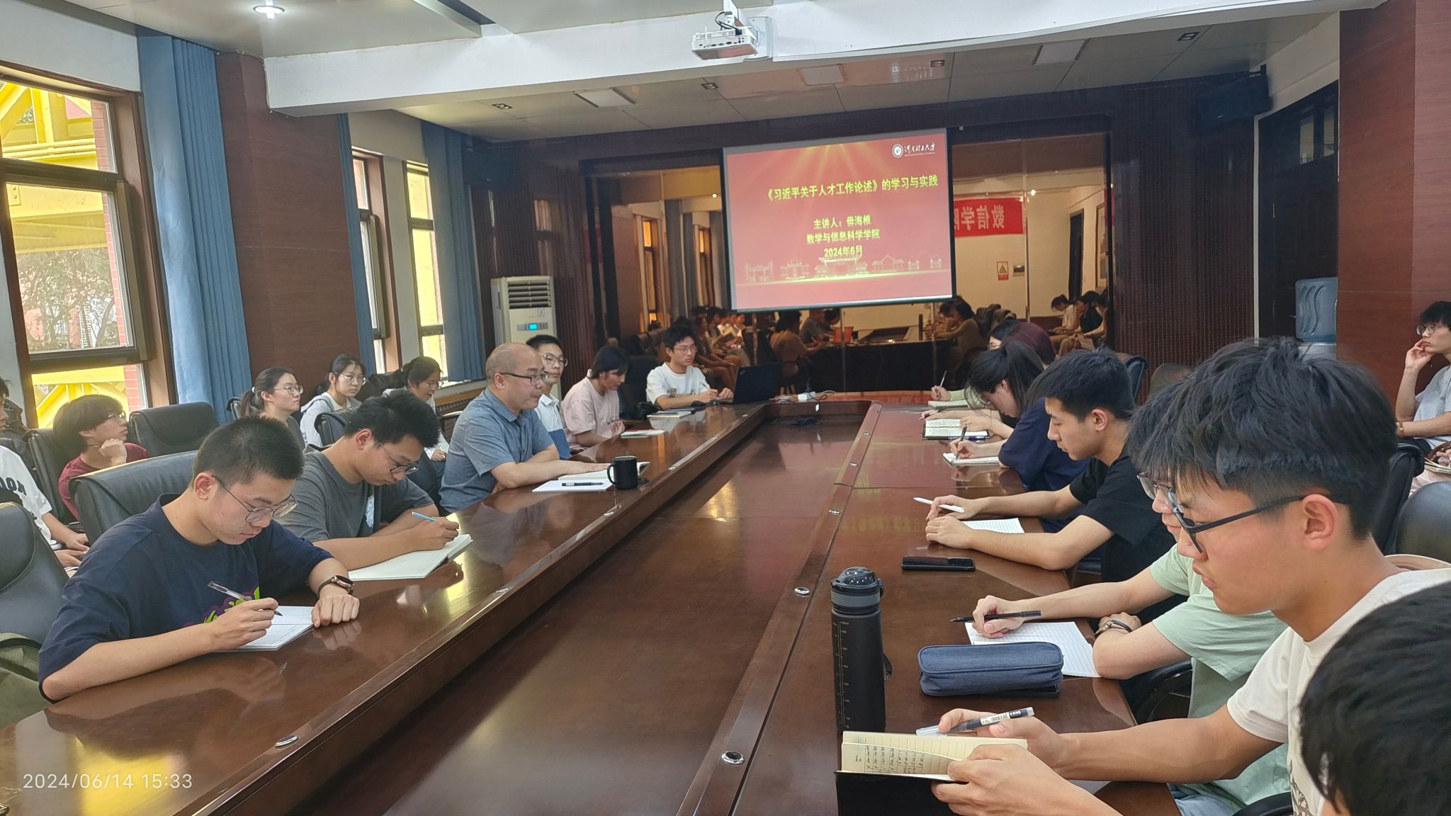 为进一步加深同学们对党和国家人才工作方针政策的理解,激发他们立志成才、报效祖国的热情,6月14日,数信学院在211会议室开展院长给学生上思政课程活动,学院院长毋海根以《习近平关于人才工作论述》的学习与实践为题进行思政课专题讲座。该院2023级部分学生参加活动。