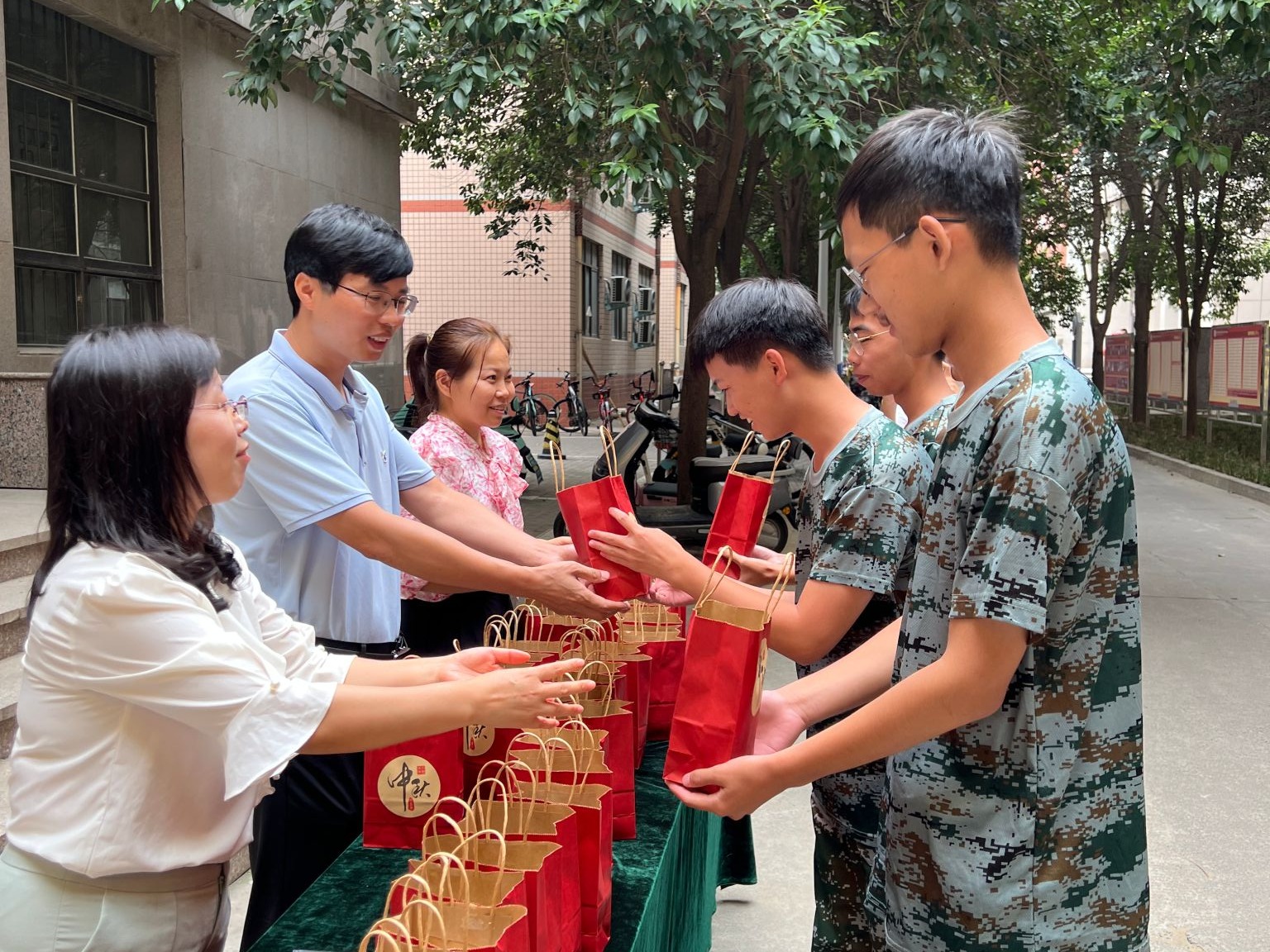 随后,在志愿者的热心协助下,老师们将学院精心准备的“爱心袋”逐一分发到每位新生手中。这些“爱心袋”里不仅装有精致的月饼,寓意着团圆与美满,还有暖心的苹果,象征着健康与平安,为同学们的军训生活增添一丝甜蜜与慰藉。学院希望通过这份心意,让远离家乡的新生们感受到数信学院这个大家庭的温暖与关怀,激励他们在军训中更加坚韧不拔,同时也寄托了对同学们未来学习生活的美好祝愿,期待他们能在大学的沃土上茁壮成长,绽放属于自己的光彩。