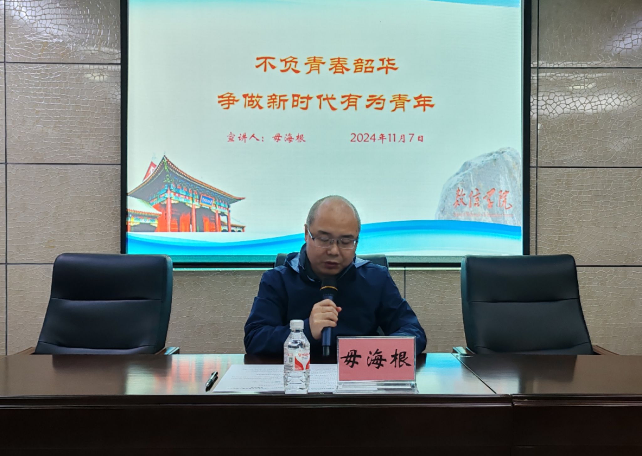 仪式结束后,毋海根以《不负青春韶华,争做新时代有为青年》为题主讲首场专题报告。他向学生提出三点希望和要求,一是要充分认识实施“青年马克思主义者培养工程”的重大意义。实施“青马工程”是党交付给共青团的一项重要政治任务,它对于团学组织保持和增强政治性、先进性和群众性,更好地担当培养中国特色社会主义事业建设者和接班人这一根本任务,具有十分重要的支撑。二是要坚定共产主义远大理想和中国特色社会主义共同理想。党的嘱托、人民的期望、中国青年运动的光荣传统,赋予了当代青年沉甸甸的历史责任和奋勇前进的无穷动力。希望大家以此为契机,练就高强本领,锤炼意志品格,提升理论素养。三要始终做习近平新时代中国特色社会主义思想的坚定信仰者和忠诚实践者。大家要主动把自己的小我融入祖国、人民的大我之中,勇立时代潮头,争做时代先锋,锤炼品德修为,练就过硬本领,明德任责、好学力行、勤勉求是,拼搏奋斗,笃行不怠,努力成为担当民族复兴大任的时代新人。