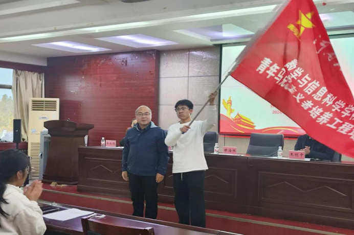 仪式上,院团委副书记胡华伟宣读了《数学与信息科学学院“青年马克思主义者培养工程”实施方案》。毋海根向新成员表示祝贺并为“青马工程”培养班授旗,学员代表程栋上台接受授旗并合影留念。全体成员在领誓人马聆欢带领和监誓人杨洋监督下进行宣誓。校第十四期“青马工程”培养班学员、数学类2303班程舒婷和学院本期“青马工程”培养班学员代表、数学类2306班刘彤分别发言,表达自己对于“青马工程”培养班顺利开班的祝福和期待,以及珍惜学习机会、严守学习制度、全面收获学习成果的决心。