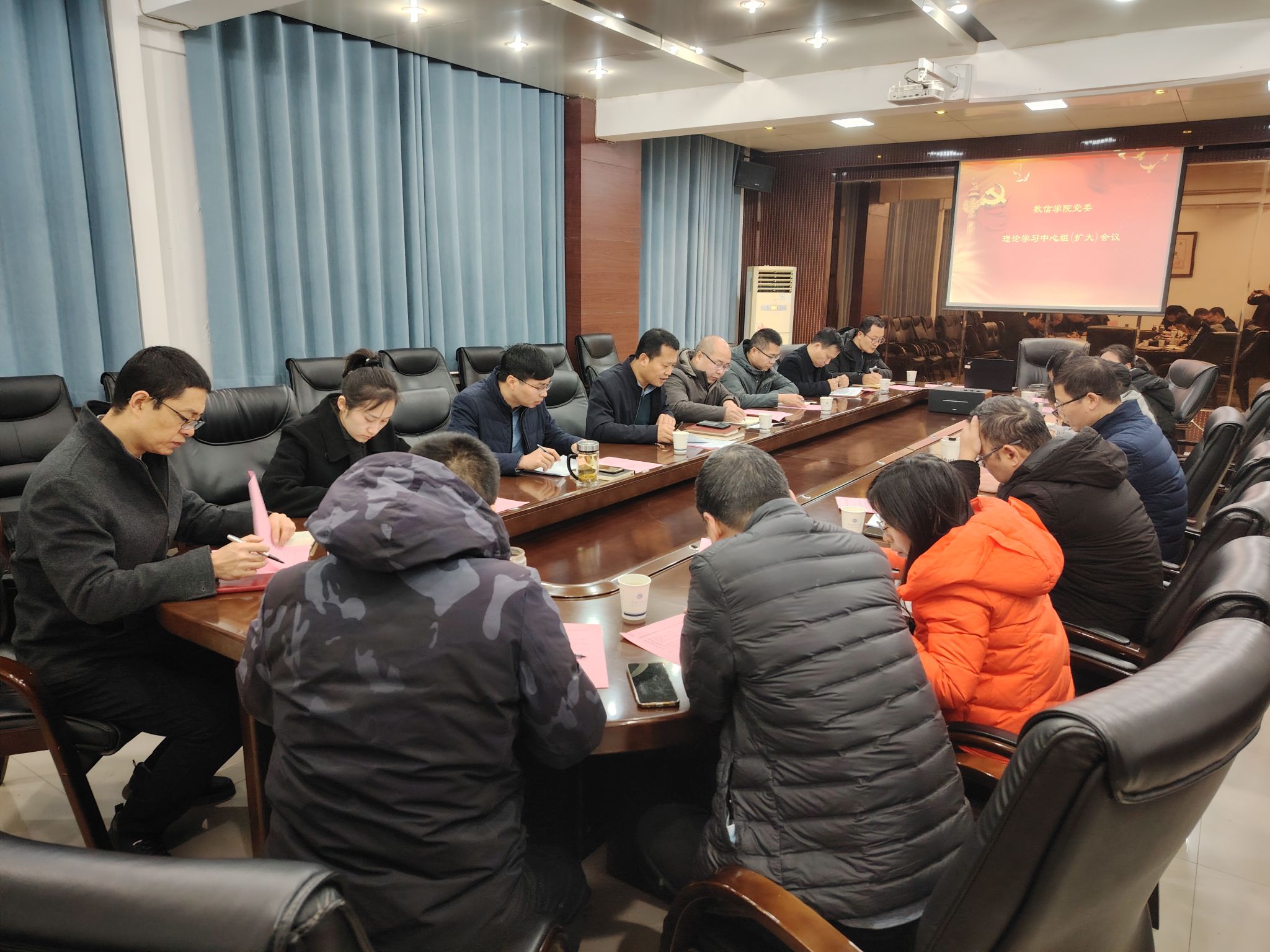 本网讯(通讯员 王璐璐)12月13日上午,数信学院在院楼211会议室召开党委理论学习中心组(扩大)会议,围绕“推进学科专业优化调整,助力‘双一流’创建”主题,开展集中学习研讨交流。院领导班子、党委委员、机关各科室负责人、系部(中心)主任、党支部书记参加会议。党委宣传部副部长、融媒体中心副主任裴建伟,党委宣传部文明建设科副科长马志敏对本次学习进行巡听旁听。会议由院党委书记刘春德主持。