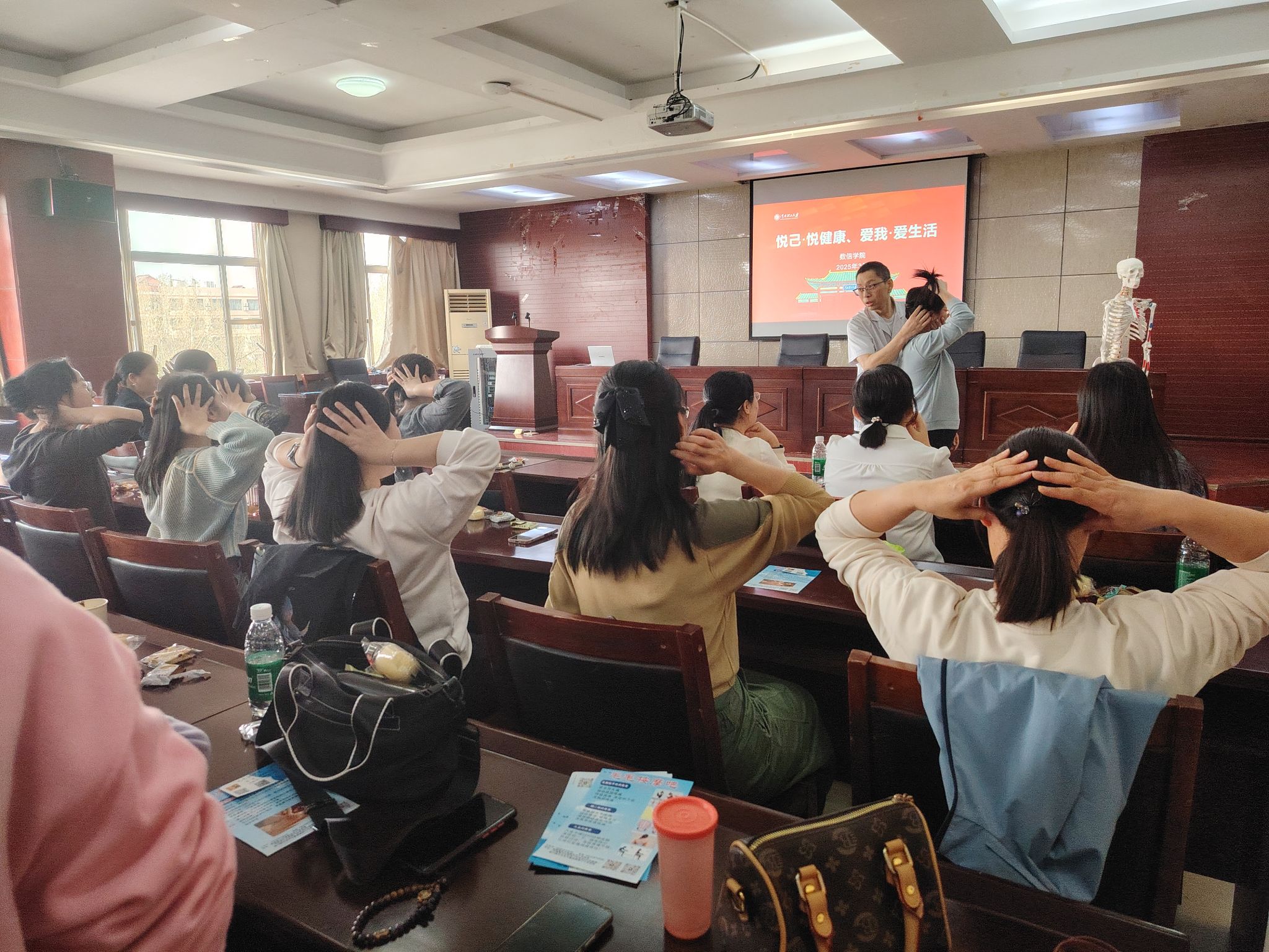 本网讯(通讯员 王璐璐)为切实加强对全校女教职工的人文关怀,提高大家的自我保健意识和健康水平,提升女教职工的身心健康和生活质量,3月26日下午,校工会在数信学院3401会议室举行女教工身心健康管理技能培训活动。本次活动以“悦己·悦健康、爱我·爱生活”为主题,由我院工会承办,邀请资深脊柱按摩师、健康管理师王利平老师担任活动嘉宾。