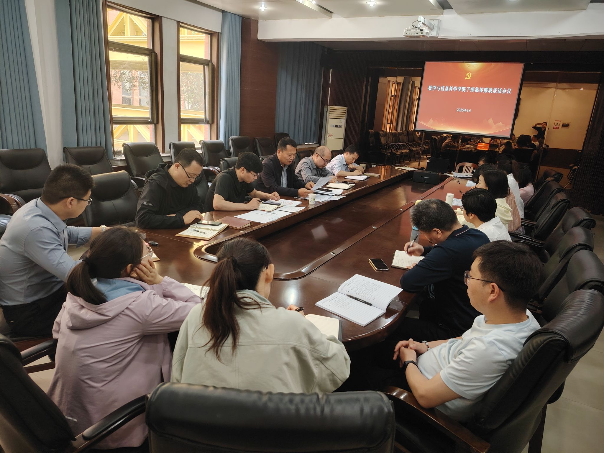 本网讯(通讯员 王璐璐)为深入贯彻落实全面从严治党要求,加强党风廉政建设,强化干部廉洁自律意识,4月18日下午,数信学院在院楼211会议室召开干部集体廉政谈话会议。学院领导班子成员、全体科级干部及各党支部书记、系部(实验中心)主任、辅导员参加了此次会议。会议由学院党委书记刘春德主持。