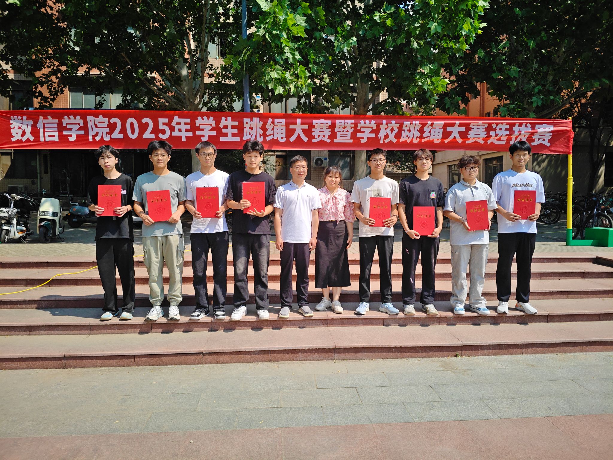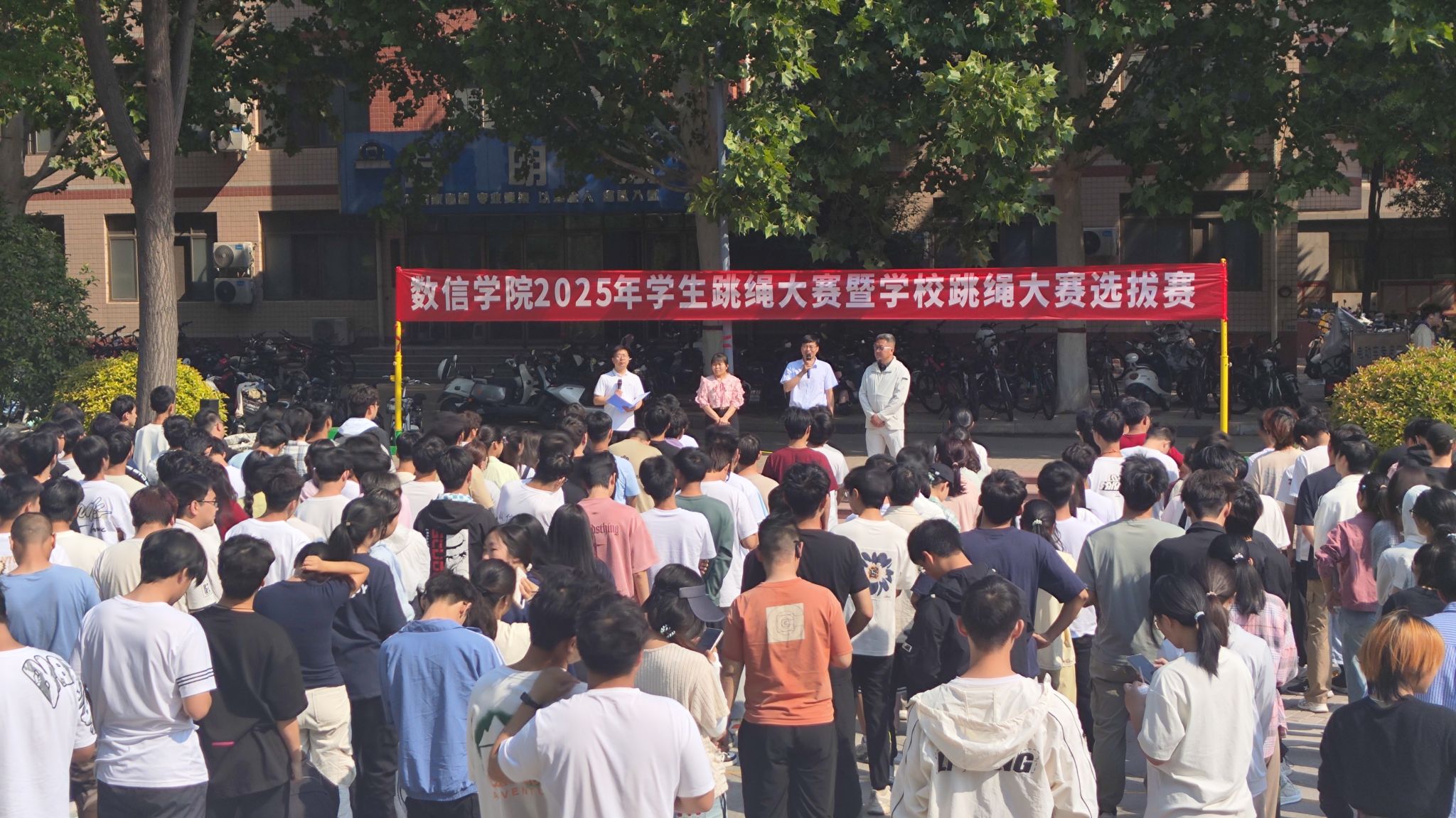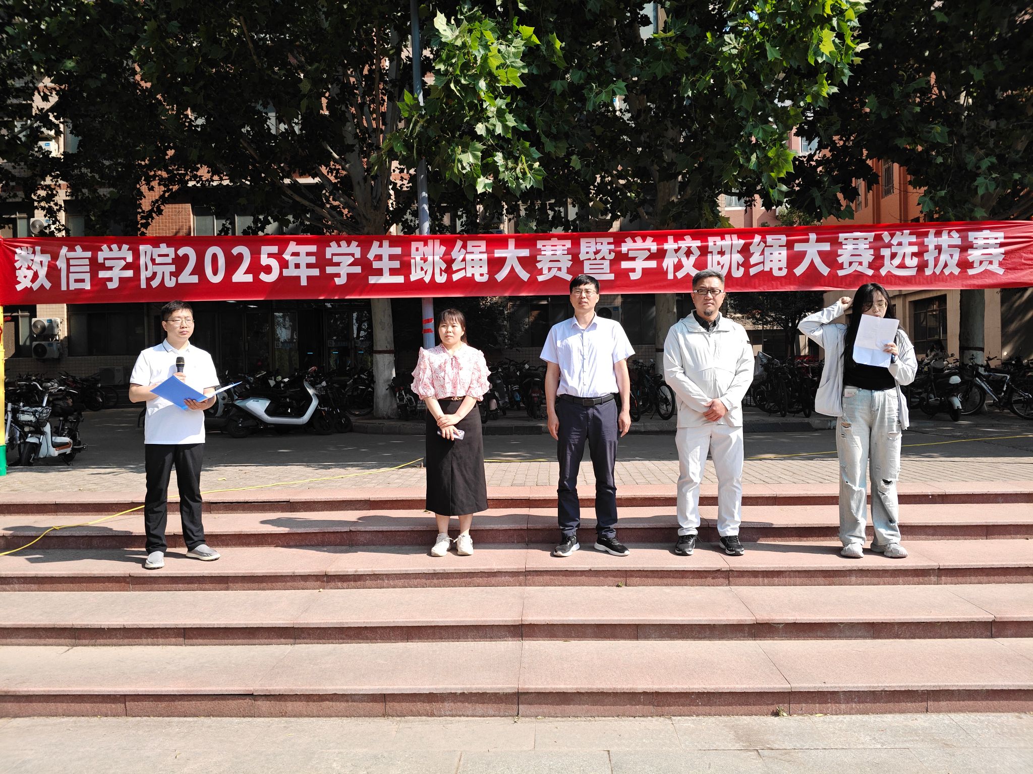 本网讯(通讯员 图/曹益豪 蒋庭丰 文/邢清涵 孙家灿)为丰富学生课余生活,增强学生身体素质,5月10日上午,数信学院在历史文化园下沉广场举办2025年学生跳绳大赛暨学校跳绳大赛选拔赛。数信学院党委副书记王明中、体育学院负责老师梁华伟、数信学院2024级辅导员王白鸽与300名学生参加了比赛开幕式。开幕式由院团委副书记胡华伟主持。