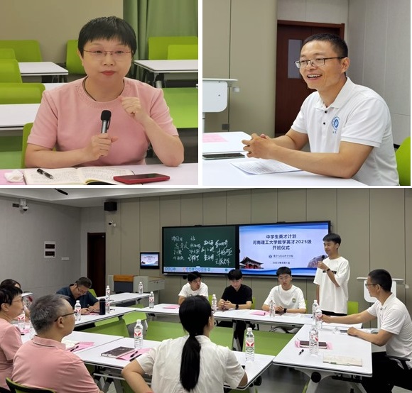 8月1日上午,河南理工大学 “中学生英才计划”数学组2025级开班仪式暨首次师生见面会在我校智慧教室3204圆满举行。河南理工大学数学与信息科学学院院长毋海根教授、焦作市第一中学校长王强、项目导师团成员出席活动,学院副院长牛海峰教授主持仪式。