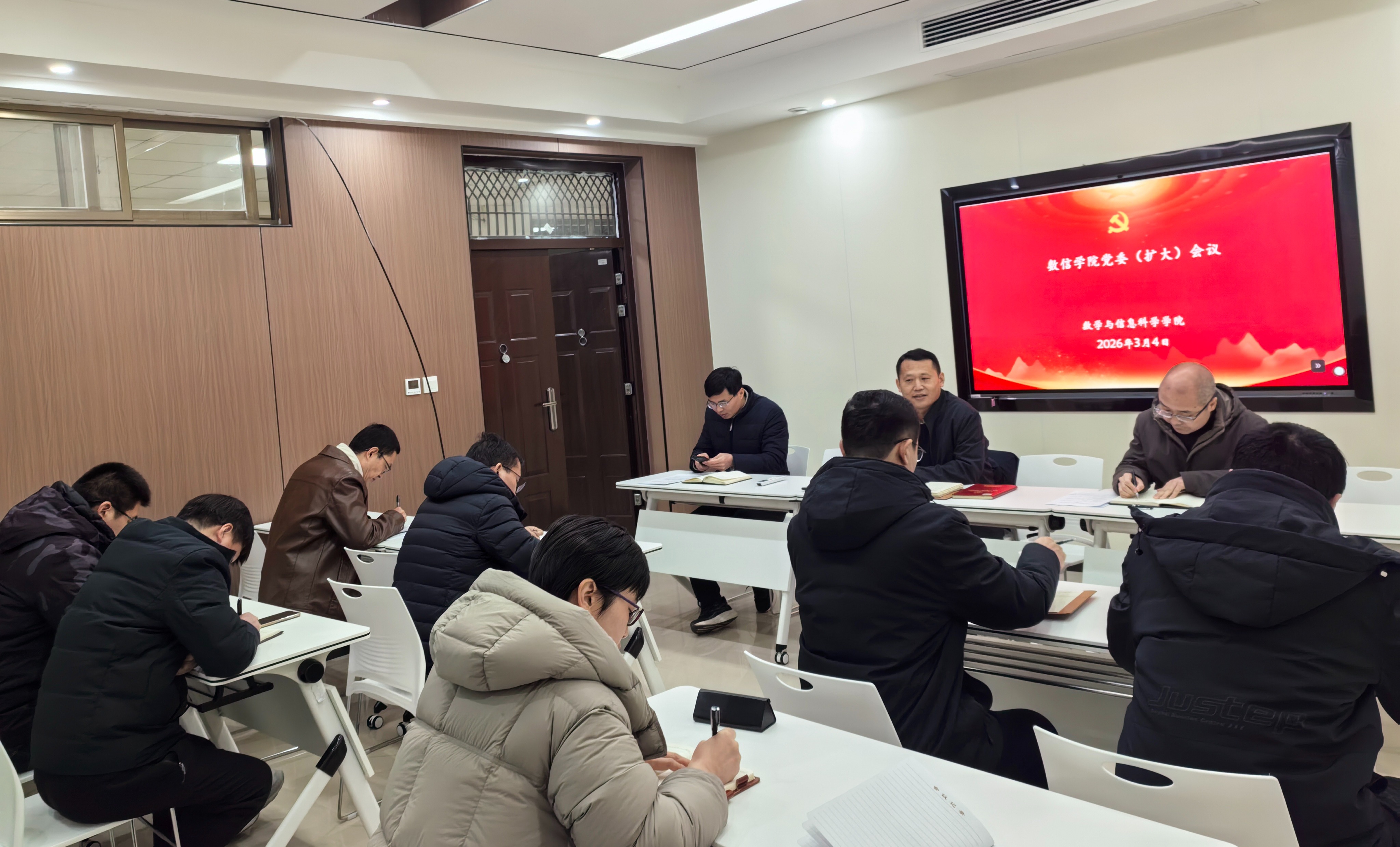 本网讯(通讯员 王璐璐)3月4日下午,数信学院召开党委(扩大)会议,深入学习贯彻习近平总书记关于树立和践行正确政绩观学习教育的重要讲话指示精神,传达贯彻落实上级有关通知和会议精神,研究部署学院树立和践行正确政绩观学习教育(以下简称“学习教育”)工作。院党委书记刘春德主持会议并讲话,院党委副书记王明中传达学校学习教育工作方案,学院处级领导干部、党委委员及各党支部书记参加会议。