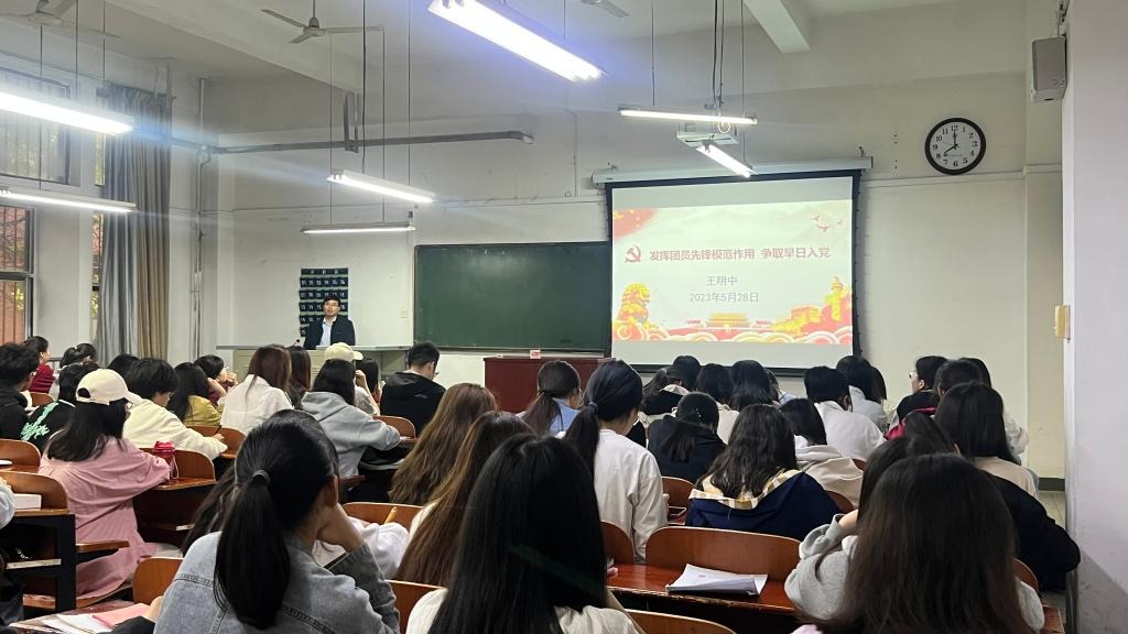 5月28日上午,学院党委副书记王明中和团委书记王孝华分别以《发挥团员的先锋模范作用,争取早日入党》、《新时代共产党员的标准和入党程序》为主题为学员们开展第三讲和第四讲。王明中阐释了党始终坚持全心全意为人民服务的宗旨的重要意义,希望学员们在学习生活中发挥先锋模范作用。王孝华带领学员们全面了解加入中国共产党的条件和程序,希望各位学员以共产党员的标准严格要求自己,以实际行动争取早日成为一名中共党员。