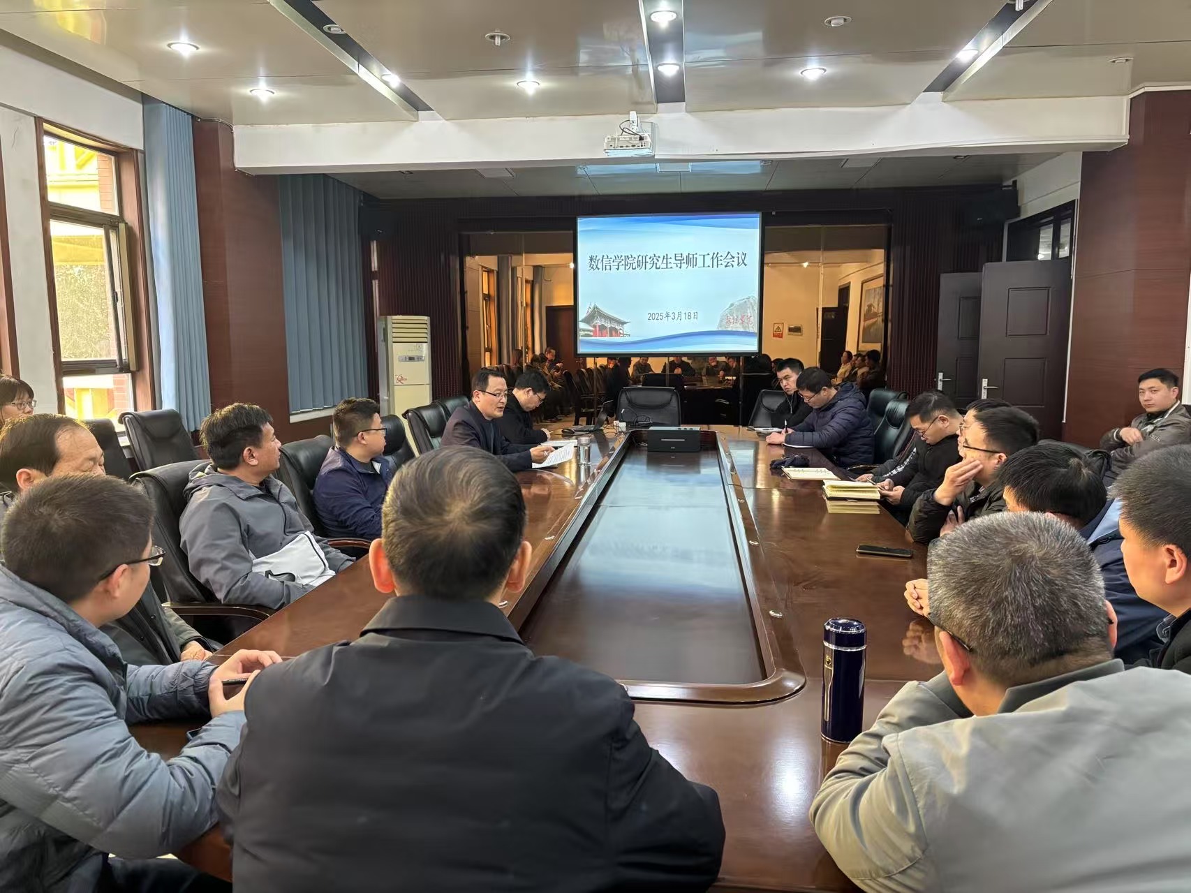 3 月 18 日下午,数学与信息科学学院召开 2025 年度研究生导师工作会议,全体研究生导师齐聚一堂,共商研究生人才培养大计。会议由学院副院长司增艳主持。