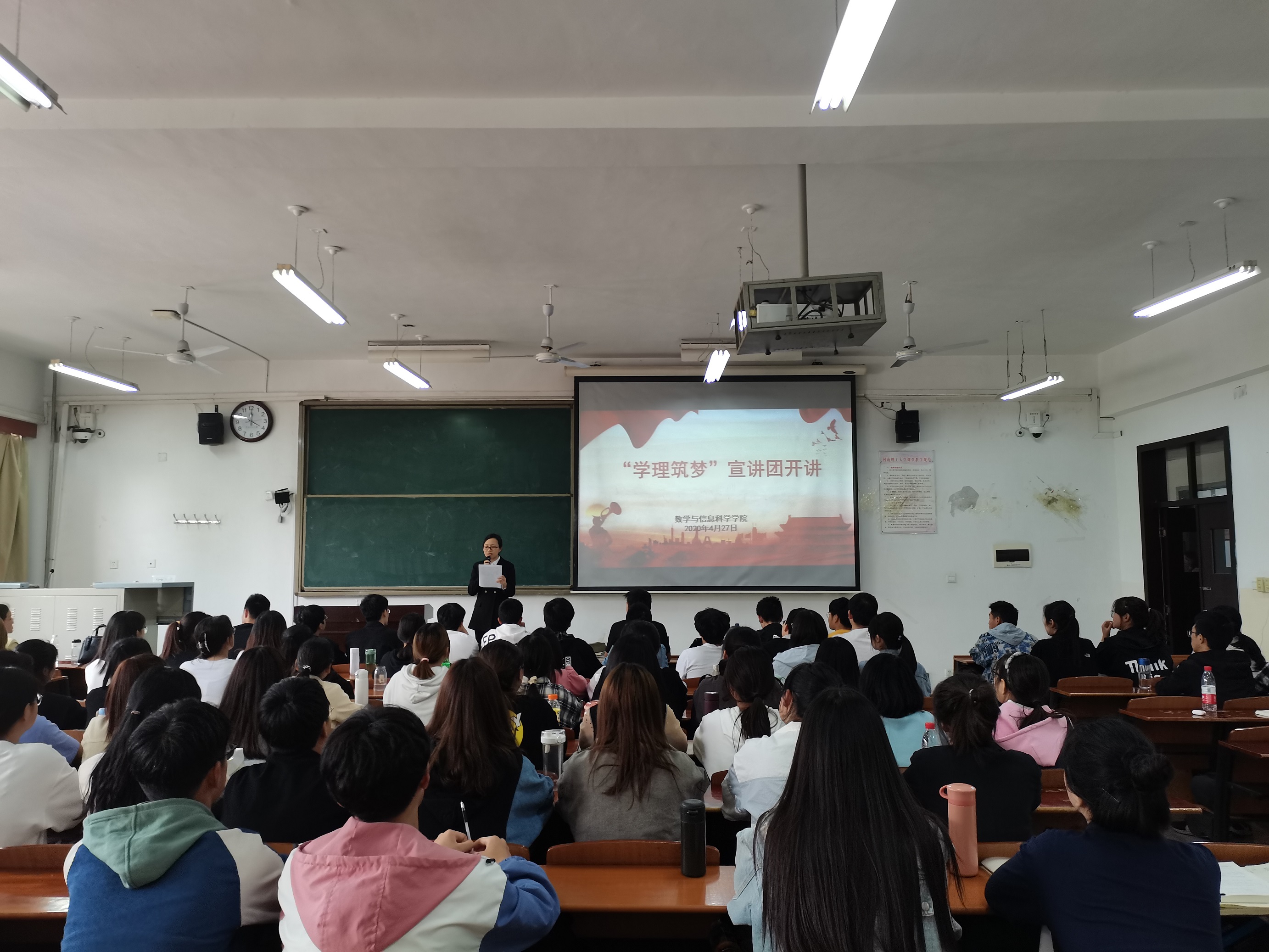 4月27日下午,数信学院在3204教室举办“学理筑梦”主题宣讲活动。学校“学理筑梦”宣讲团三位老师进行宣讲。学院2020级学生代表聆听宣讲。宣讲活动由院学工办主任牛芳主持。