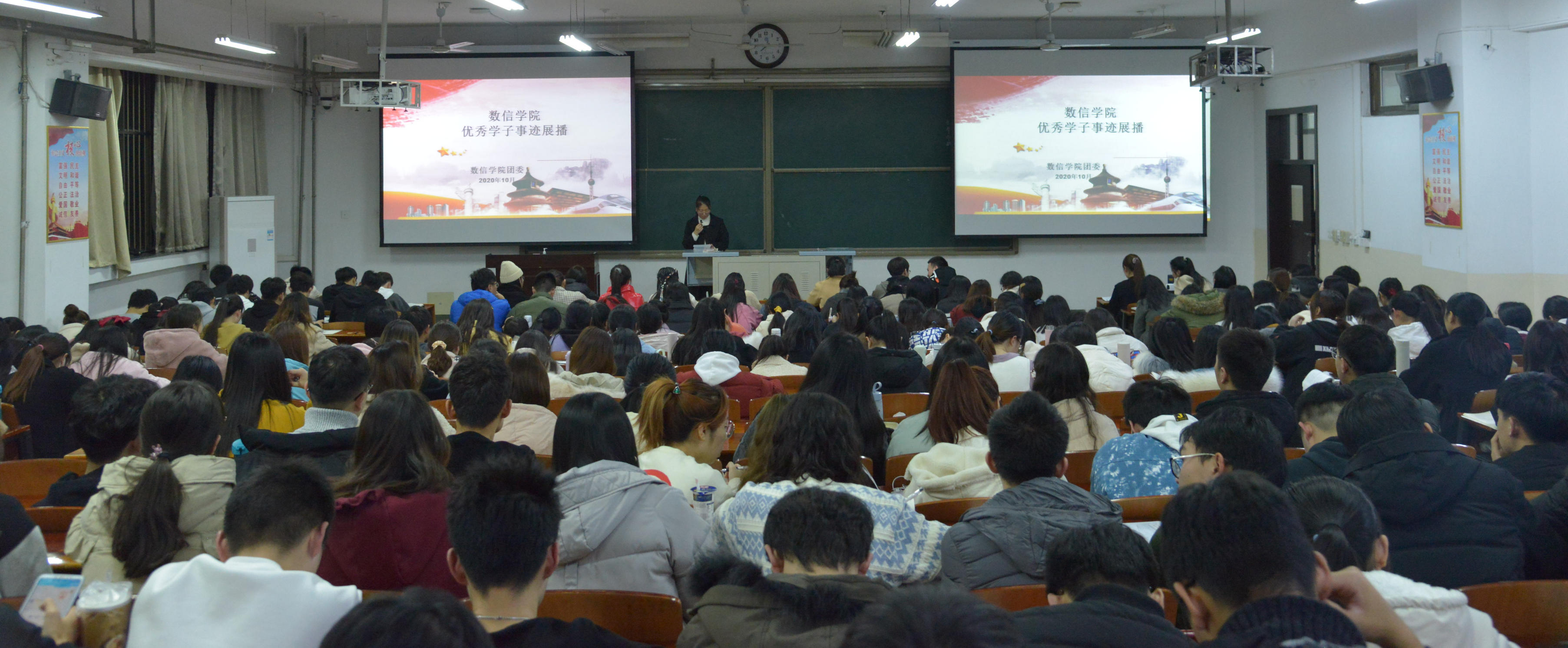 10月14日晚,数信学院于第三教学楼101教室举办“优秀学子事迹展播”活动。我院2018级辅导员王孝华和各年级部分学生参加本次活动。