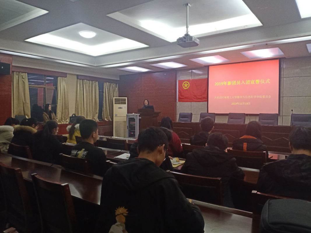 为进一步壮大共青团队伍,及时吸收思想进步、积极上进的青年加入团组织,学院团委于12月19日下午五点在3401会议室召开入团宣誓大会。此次大会由学生会副主席任苏醒主持,参加大会的有数信学院团委书记王孝华老师、组织部全体人员和全体新团员。