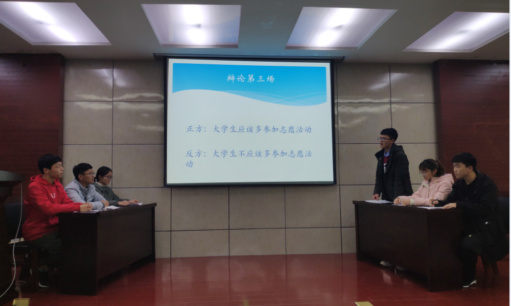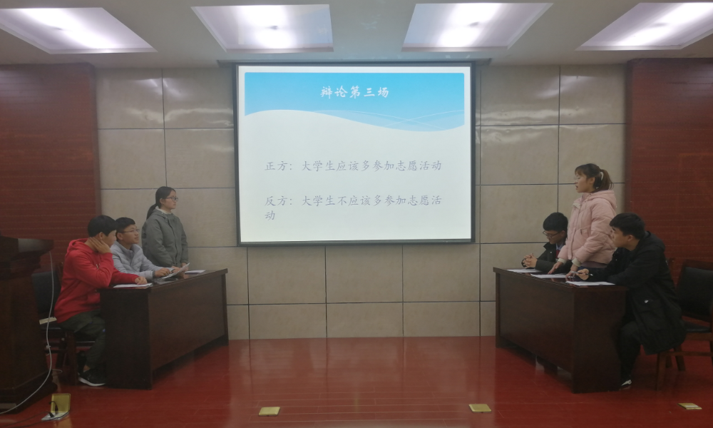 本次活动分为两个部分组成辩论赛和个人演讲。辩论赛分三组分别围绕:“志愿活动中热情更重要和志愿活动中能力更重要”、“志愿活动利大于弊还是弊大利”、“大学生是否应该多参加志愿活动”。围绕辩题,正方和反方进行激烈辩论,赛场不时掌声不断。在个人演讲环节,参赛成员结合自身的实际,围绕“感悟与成长”,进行精彩分享。评委老师一直热心点评,指出较好的地方给同学们以鼓励,指出同学们的不足让同学们加以改进,