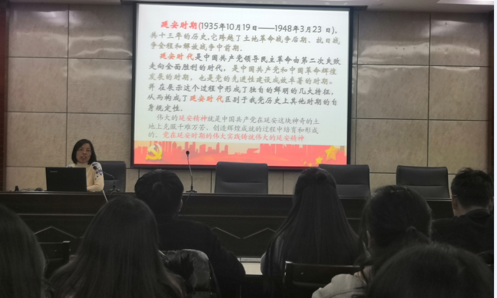 培训中,王孝华阐述了本次培训的目的和意义,并用ppt的形式为进行现场讲解。王孝华老师为大家讲述了延安精神产生的历史条件,延安精神形成发展的历史过程以及延安精神的主要内容和时代价值,让同学们对延安精神的内容——坚定正确的政治方向,解放思想,实事求是的思想路线,全心全意为人民服务的根本宗旨,自力更生,艰苦奋斗的创业精神有了深刻的理解,也更加明白了新时代传承延安精神的重要意义。最后,王孝华老师对此次会议进行总结,鼓励各位团员团干弘扬延安精神,传承先辈们的精神。