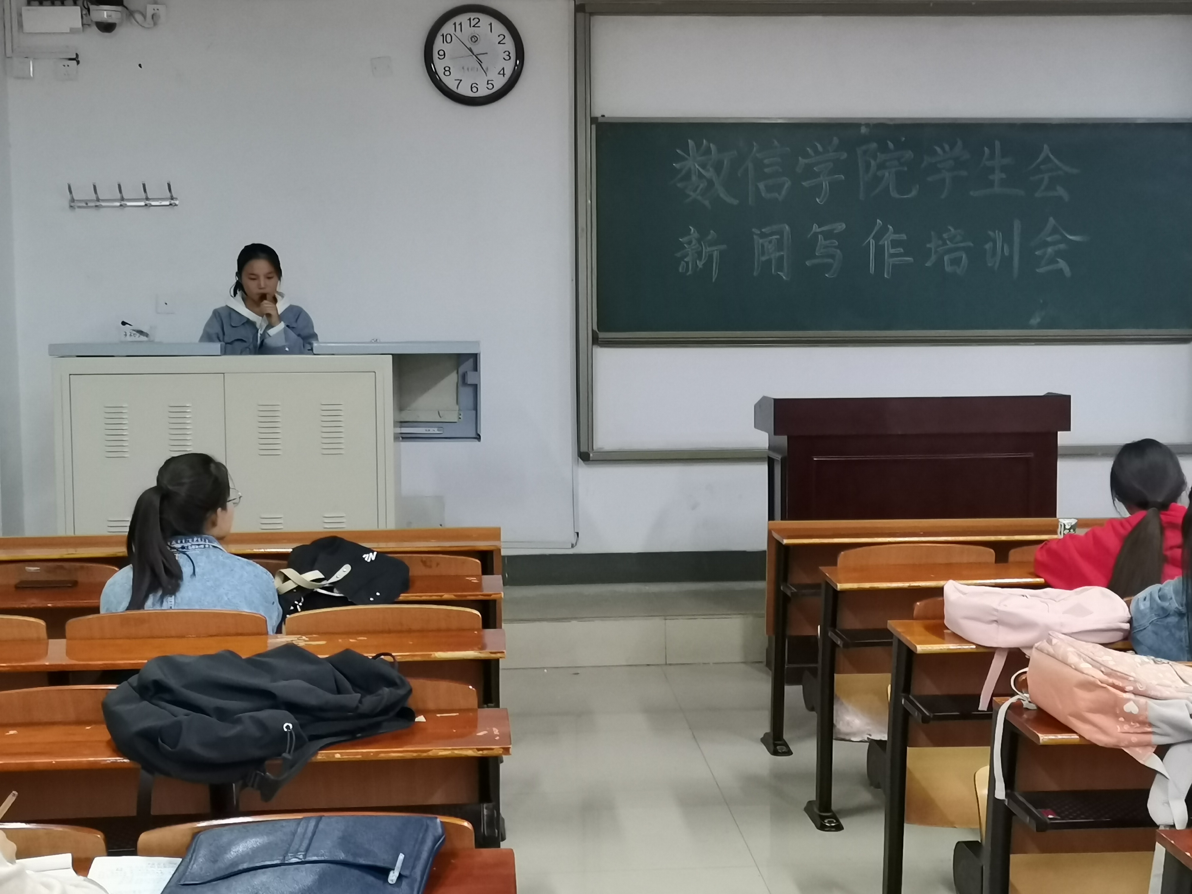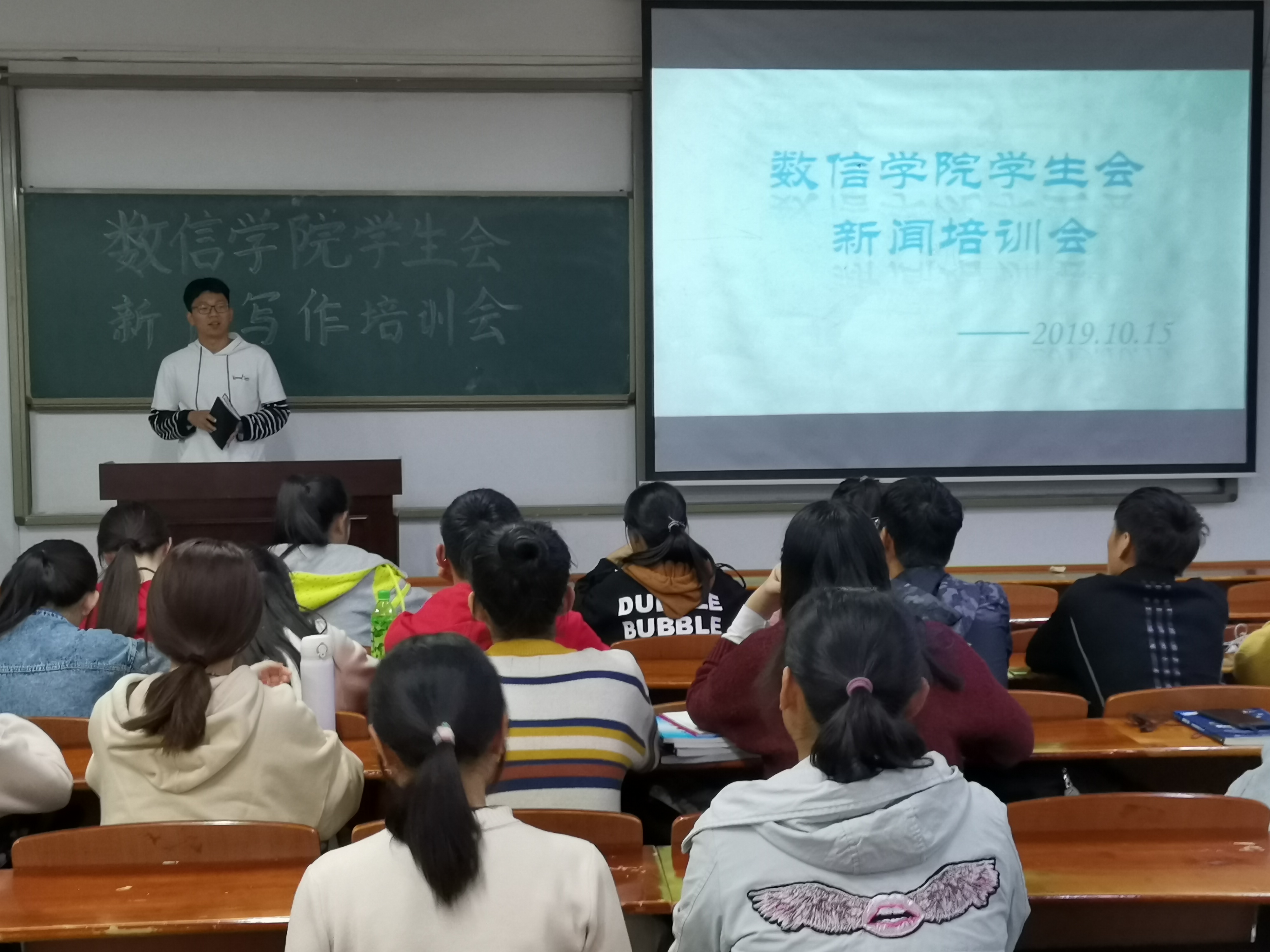 金秋送爽,丹桂飘香。伴随着数信学院学生会招新工作的结束,院学生会对新加入的小干事展开新闻写作的培训工作,该培训会于10月15日下午在三教307教室举行。本次培训会由宣传部部长张智主持,学生会各部门共20余名同学参加。