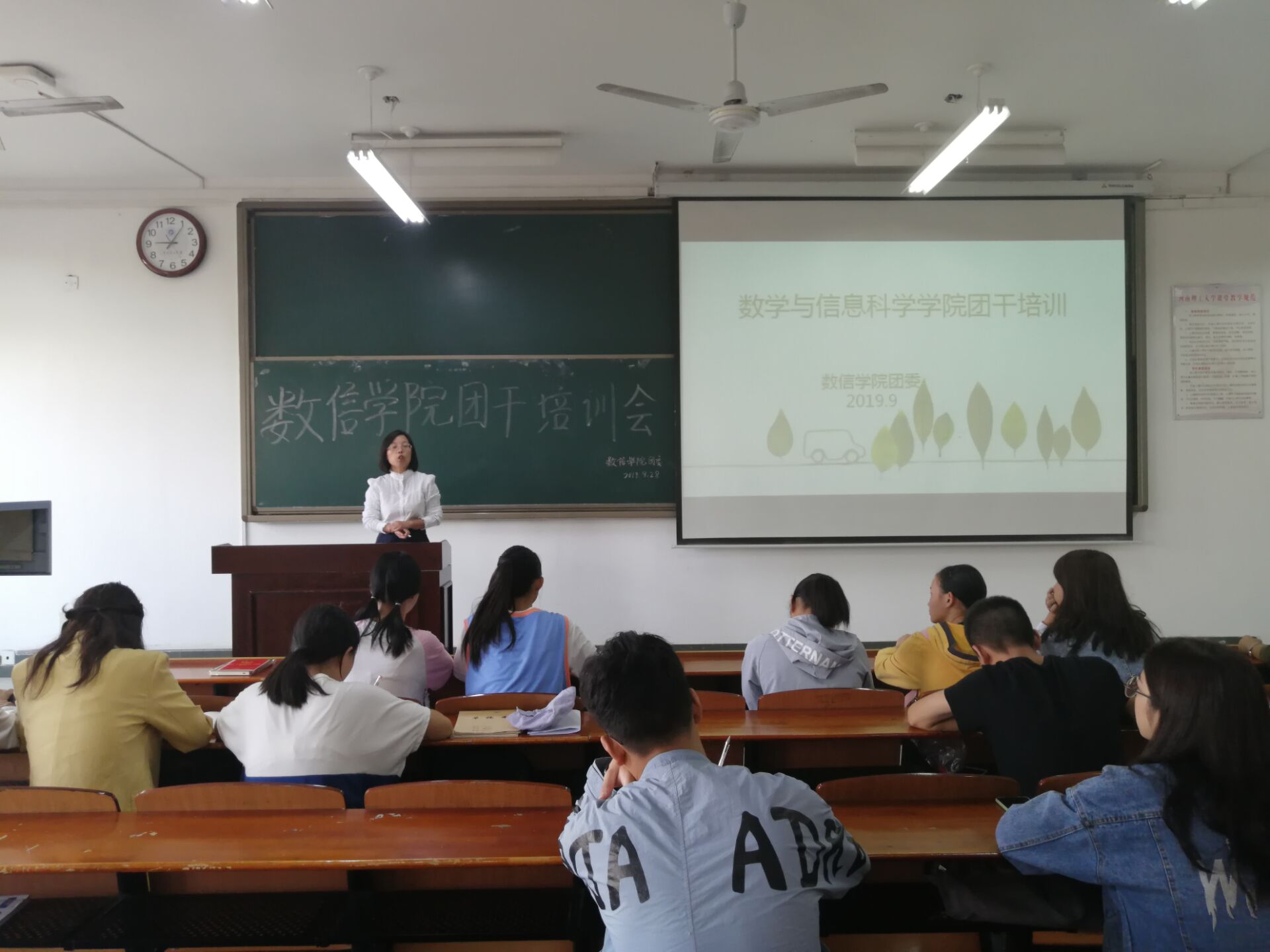 团干部是组织广大团员积极开展各项活动的核心力量。为使团干部尽快地熟悉团支部业务,进一步提高工作能力和服务水平,数学与信息科学学院团委于9月28日在3301教室举办团干培训。来自数信学院的各团支书以及组织部成员参加了本次培训。本次大会由团委书记王孝华主持。