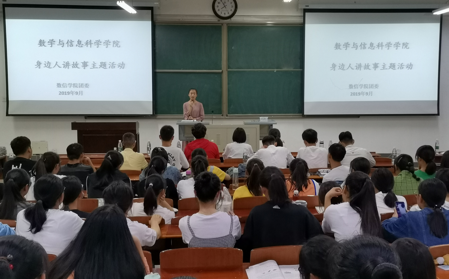 2019年9月24日,数信学院于三教102教室举办“身边人讲故事”主题活动。本次活动特邀我院2016级陈晓萌作典型发言,2018级全体学生到场聆听。