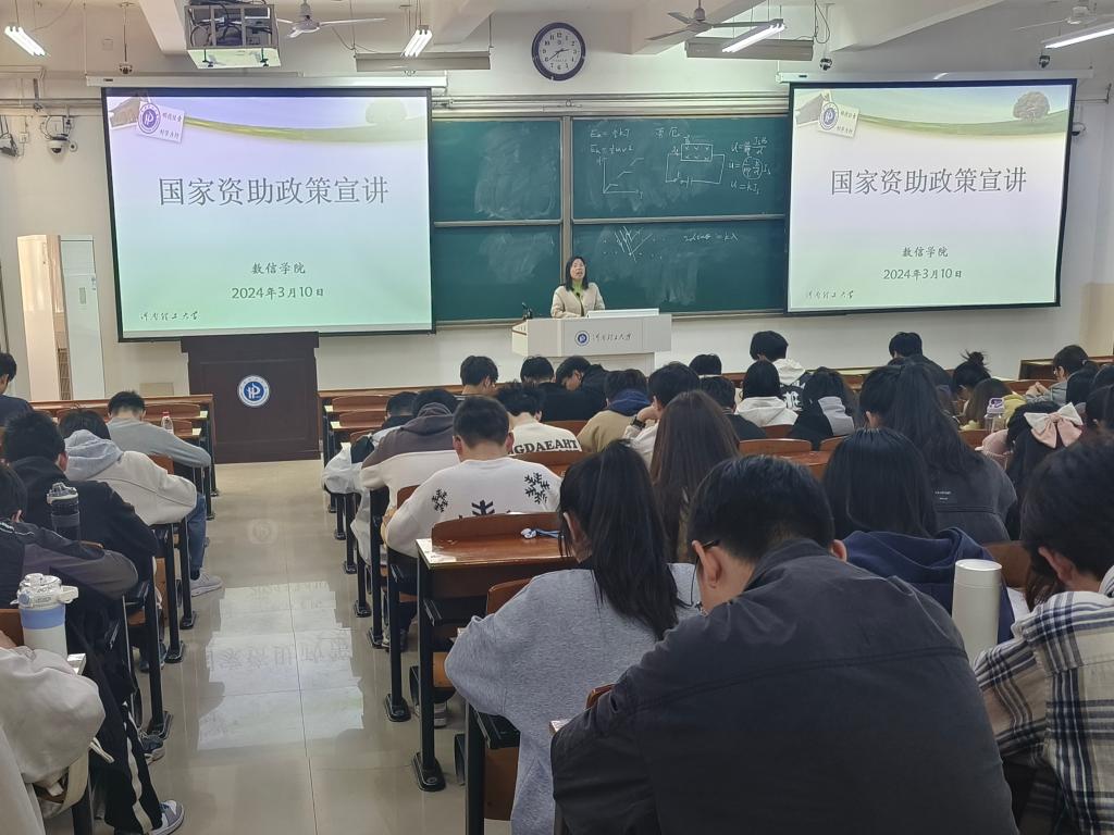 (通讯员 王孝华 骞俊杰)为进一步加强资助宣传教育工作,提高学生对国家资助政策知晓率和满意度,倡导受助学生心怀感恩、励志成才、回报社会,3月10日,数信学院组织开展“起航未来 资助同行—数信学院‘开学第一课’国家资助政策宣讲暨感恩励志教育主题活动”。此次活动由各年级辅导员负责组织实施,数信学院全体学生参加。