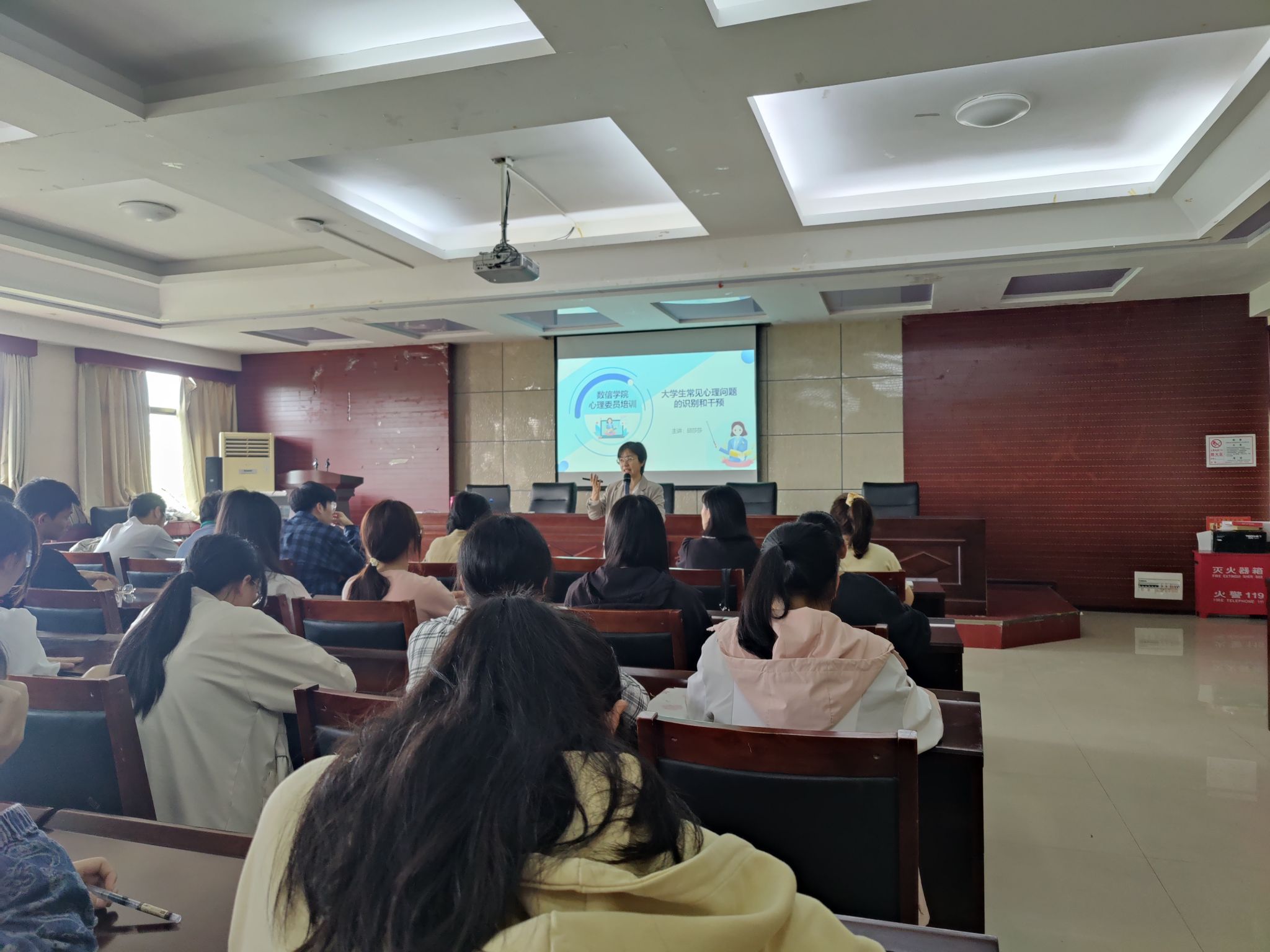 本网讯(通讯员 赵楠)为增强心理委员和宿舍信息员的危机学生识别和干预能力,更好地服务于班级和宿舍同学,4月14日下午,数信学院特邀校宣讲团专家、国家二级心理咨询师邱莎莎老师在数信楼3401会议室开展《大学生常见心理危机的识别和干预》的专题培训,学院全体宿舍信息员及心理委员参加培训。