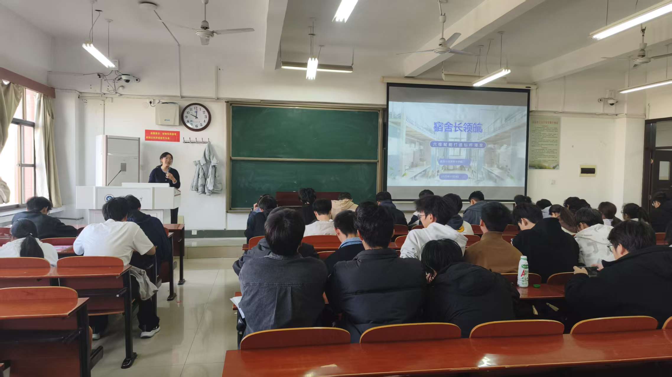 培训会上,赵楠围绕6个核心模块展开系统讲解:明确宿舍长在学风建设、内务管理、矛盾调解中的核心职责,详解宿舍卫生打扫、作息规范等日常管理要求,强调文明用语、互助友爱等行为习惯养成,通过典型案例剖析普及消防安全、财产安全等防范知识,指导宿舍长识别同学情绪异常、心理困扰等信号并掌握初步应对方法,同时传授宿舍突发矛盾、设施故障等问题的应急处理流程。最后,赵楠结合工作实际,就宿舍长如何发挥桥梁纽带作用、提升团队协作能力等内容与现场学生互动交流,为宿舍长答疑解惑。