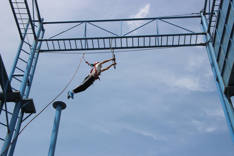 本次活动主要分为三个环节。首先,教练带领同学们进行了团队建设。任何组织群体都需要一种凝聚力,而这种凝聚力则来源于良好的团队建设。随后,同学们开始了本次活动的第一个挑战项目:“信任背摔”。这个项目对同学们心理素质的提升有很大帮助,并且通过这个项目同学们之间建立起了牢固的信任关系。最后,进行了第二个,也是更高难度的挑战项目:“高空单杠”。由于在高空中每个人或多或少都会有些恐惧,对同学们来讲,从杆上站到顶端的圆盘已是一次极大的考验,从圆盘跃起抓杠更是一次心理的极限挑战。广大入党积极分子不惧困难,勇于挑战,最终,所有同学都顺利完成了两个挑战项目。