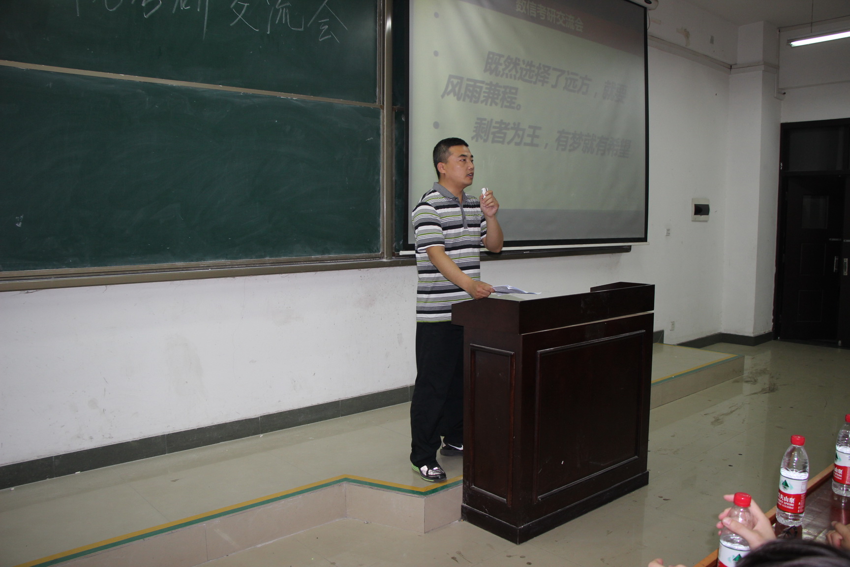 2014年6月10日晚,数信学院2014年考研经验交流会于3号教学楼3107教室举行。院党委副书记邵水军老师、团委牛芳老师出席了本次交流会。