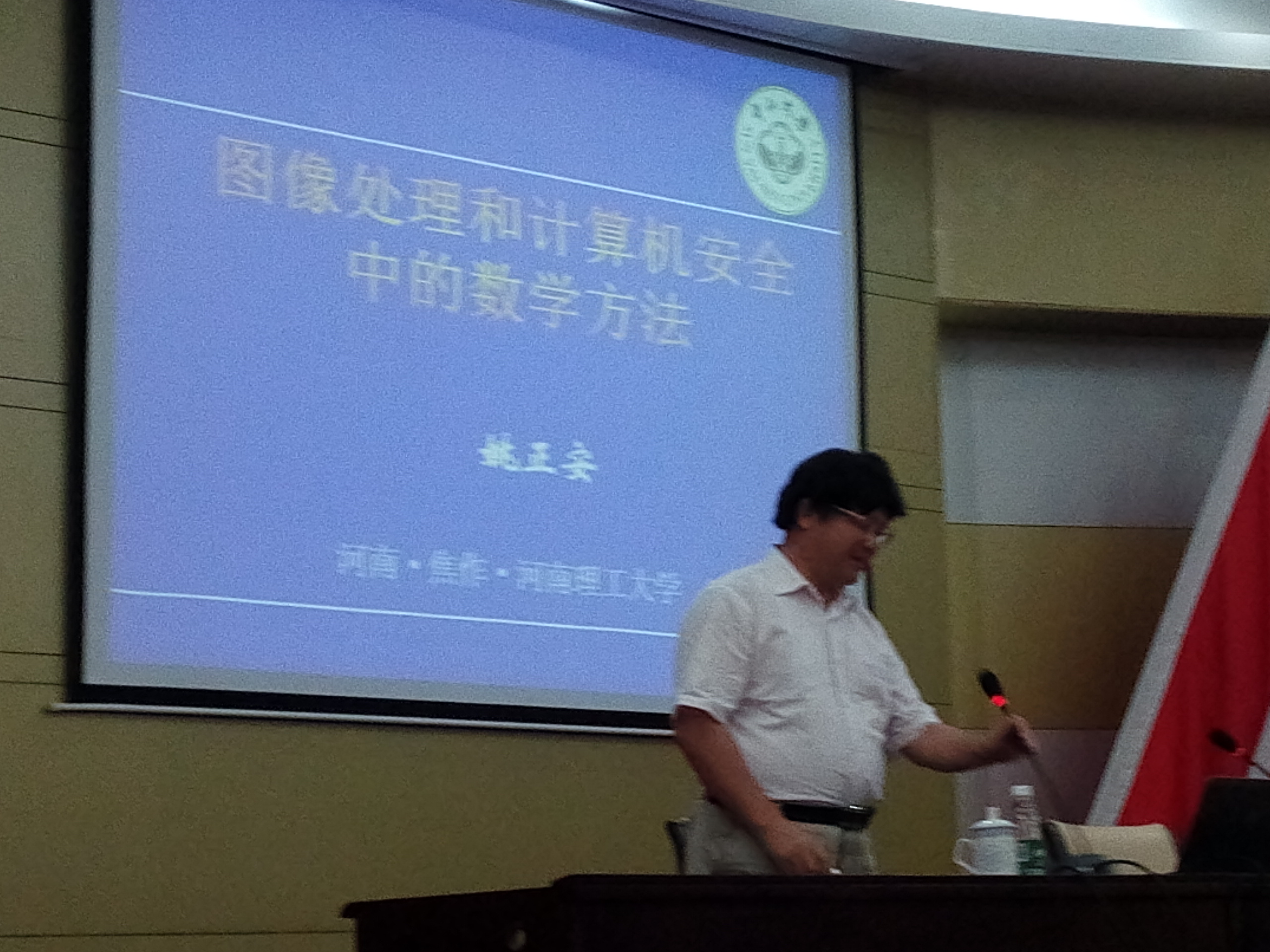 9月21日,应数信学院邀请,中山大学教授姚正安在我校圆形学术报告厅作了题为“图像处理和计算机安全中的数学方法”的学术报告,报告会由数信学院院长成军祥主持,相关专业教师、研究生及部分本科生参加了报告会。