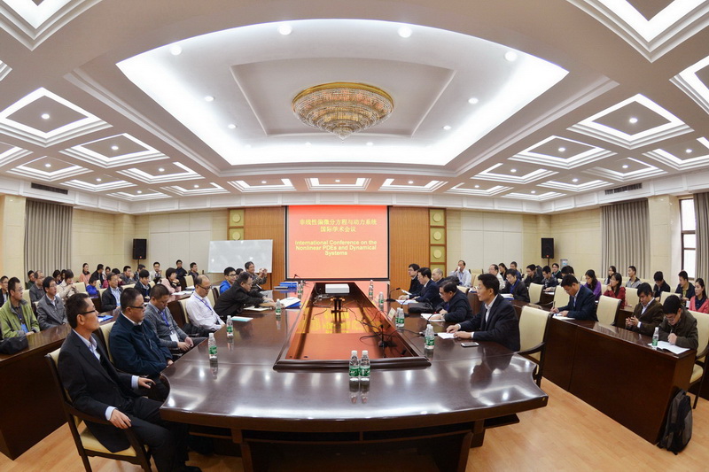 景国勋副校长首先代表河南理工大学向来自世界各地的与会专家和学者表示热烈欢迎,并向与会人员介绍了学校近几年的发展和取得的主要成就,包括数学学科近几年的发展情况,最后他预祝此次研讨会圆满成功。郭柏灵院士发表了讲话,对国际和国内非线性偏微分方程和动力系统的发展概况进行了回顾和评论,希望国内外同行更加关注研究问题的物理背景,研究应用中急需解决问题的数学理论,希望学术界的专家、学者加强合作,共同促进非线性偏微分方程和动力系统的发展。会上,杨彤教授(香港城市大学)、王亚光教授(上海交通大学)、赵会江教授(武汉大学)、章志飞教授(北京大学)、夏俊雄教授(国立台湾大学)、Guozhen Lu教授(美国Wayne州立大学)、韩青教授(美国圣母大学)、吴家宏教授(美国Oklahoma州立大学)、Dongho Chae(韩国中央大学)、Hisashi Okamoto 教授(日本京都大学)等17位国内外专家教授就自己的研究成果和大家开展了交流。