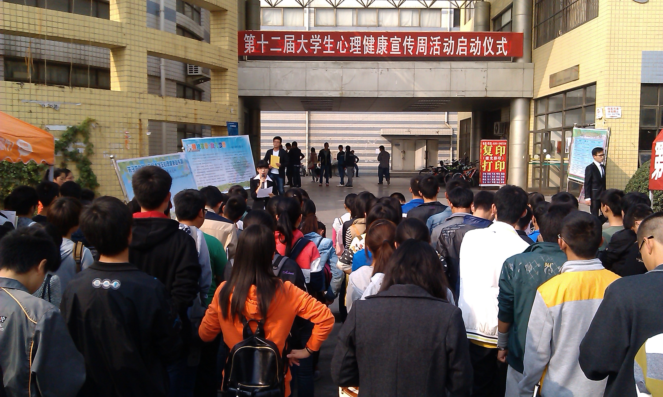 2013年10月22日下午,数学与信息科学学院2013级全体新生在大学生活动中心前参加了我校以“拥抱青春,放飞梦想”为主题的第十二届大学生心理健康宣传周系列活动启动仪式。启动仪式结束后,我院在3401会议室举办了心理健康教育专题讲座,心理咨询中心主任潘子彦老师以“如何赢得未来”为主题,为我院2013级新生上了生动形象的一课。