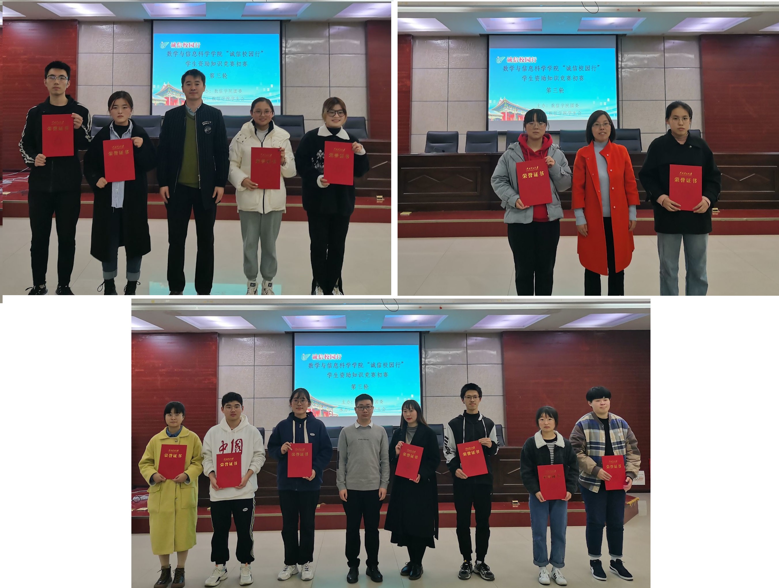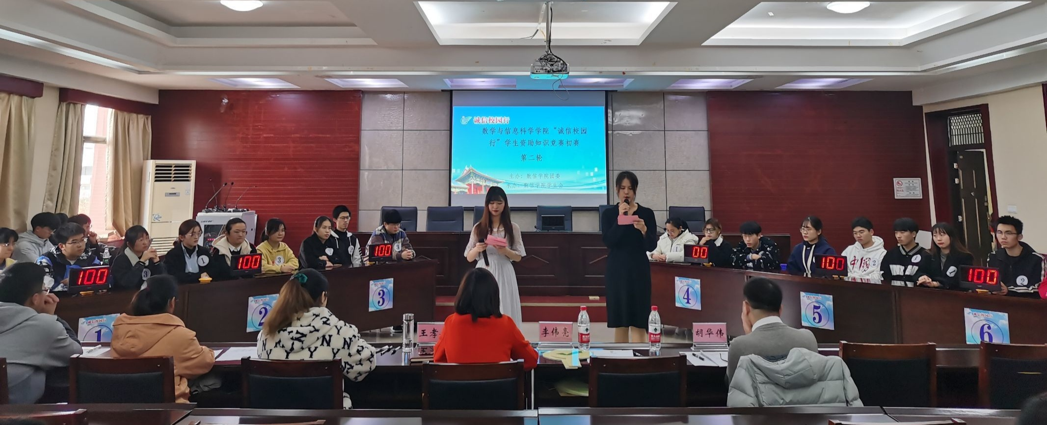 诚赢天下,信筑未来。11月21日,数信学院于3401室举办“诚信校园行”学生资助知识竞赛初赛。该院党委副书记李伟亮及全体辅导员、部分班主任担任比赛仲裁组成员,全院21支队伍共67人参赛,2021级张丁鹂、廉子元和2019级王亚、王佳莹担任本次比赛的主持人。