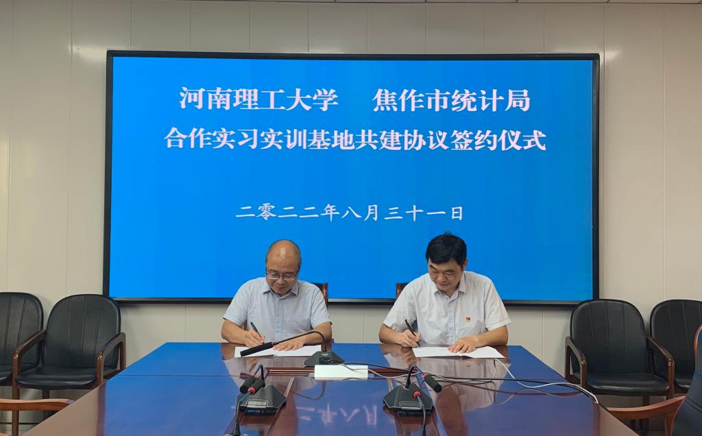 8月31日上午,河南理工大学与焦作市统计局合作实习实训基地共建协议签约仪式在焦作市市政大厦举行。河南理工大学数学与信息科学学院副院长毋海根,焦作局党组成员、副局长田亮及双方代表人员参加了仪式,并签订了共建协议。