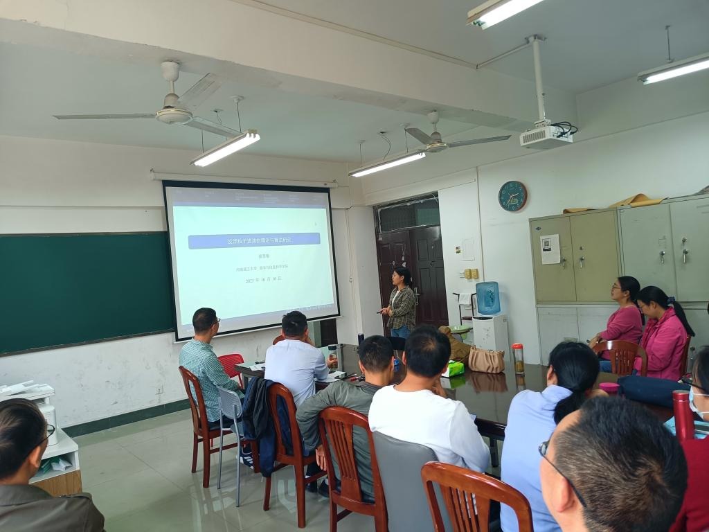 仪式最后,苗慧敏博士作了题为《反馈粒子滤波的理论与算法研究》的报告。在报告中,苗慧敏博士详细介绍了滤波问题的起源和发展,主要对如何构造状态和观测噪声相关条件下的一类非线性滤波问题中的反馈粒子滤波算法进行展开介绍,并且给出相应的数值模拟实验来验证该算法的有效性。最后苗慧敏博士与参会教师围绕数值模拟实验中的难点与适用性等展开了研讨,与会人员踊跃发言,学术讲座在热烈的氛围中圆满结束。此次报告向大家展示了反馈粒子滤波在求解非线性滤波问题中的相关进展,开拓了大家的视野,为相关研究方向的科研工作和学科建设起到了很好的推动作用。