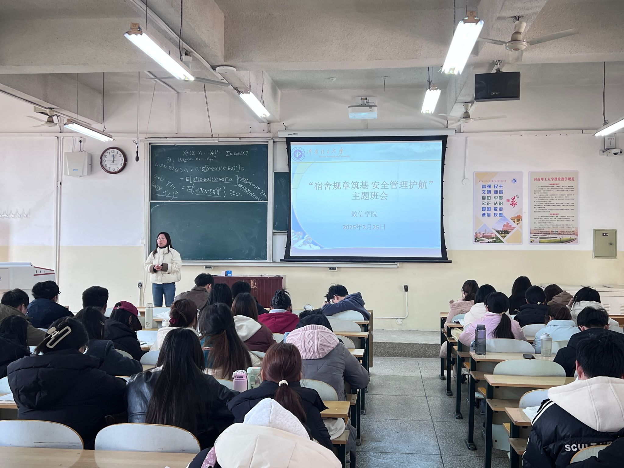 为夯实学生宿舍安全管理基础,提升学生的自我管理和服务能力,近日,数信学院组织召开“宿舍规章筑基,安全管理护航”主题班会。此次班会覆盖全院各年级本科生,由各年级辅导员老师主讲。