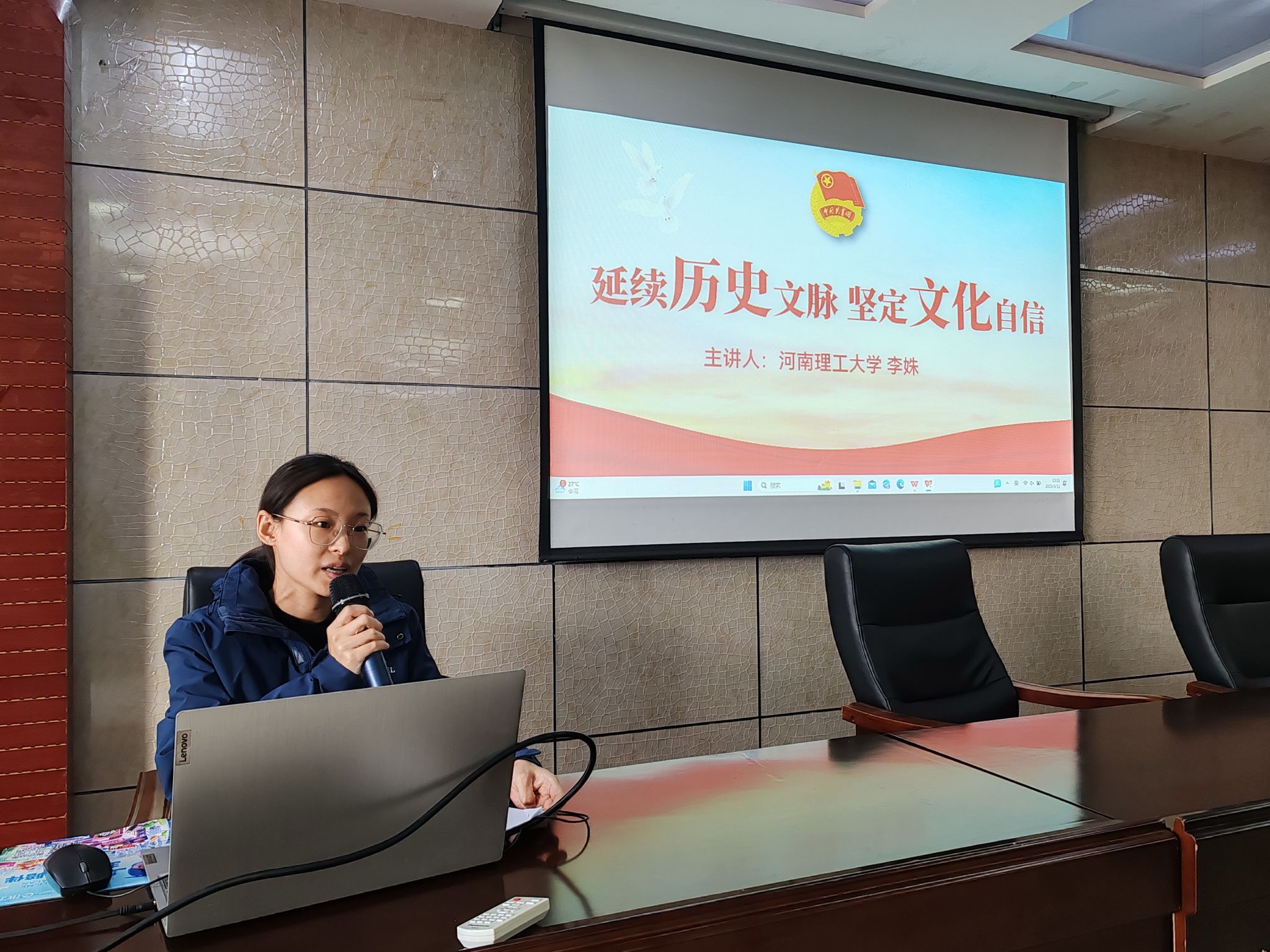 李姝首先以“延续历史文脉,坚定文化自信”为主题,结合守护敦煌壁画、“黑神话:悟空”火出圈、《哪吒2》创造票房奇迹等传承优秀传统文化事例,让同学们领略了博大精深的中华文化在新时代依旧具有强大生命力,引导学生要深入思考优秀传统文化的当代价值,激发大家对中华文化的热爱与自豪,坚定文化自信。研究生支教团代表岳媛媛介绍了西部计划和河南理工大学研究生支教团的基本情况,详细阐释了“奉献、友爱、互助、进步”的志愿精神,介绍了学校历届研究生支教团在中西部贫困地区支教扶贫中发挥的重要作用。岳媛媛还介绍了学校研究生支教团的选举办法,并鼓励数信优秀学子踊跃报名,为祖国西部建设贡献青春力量。