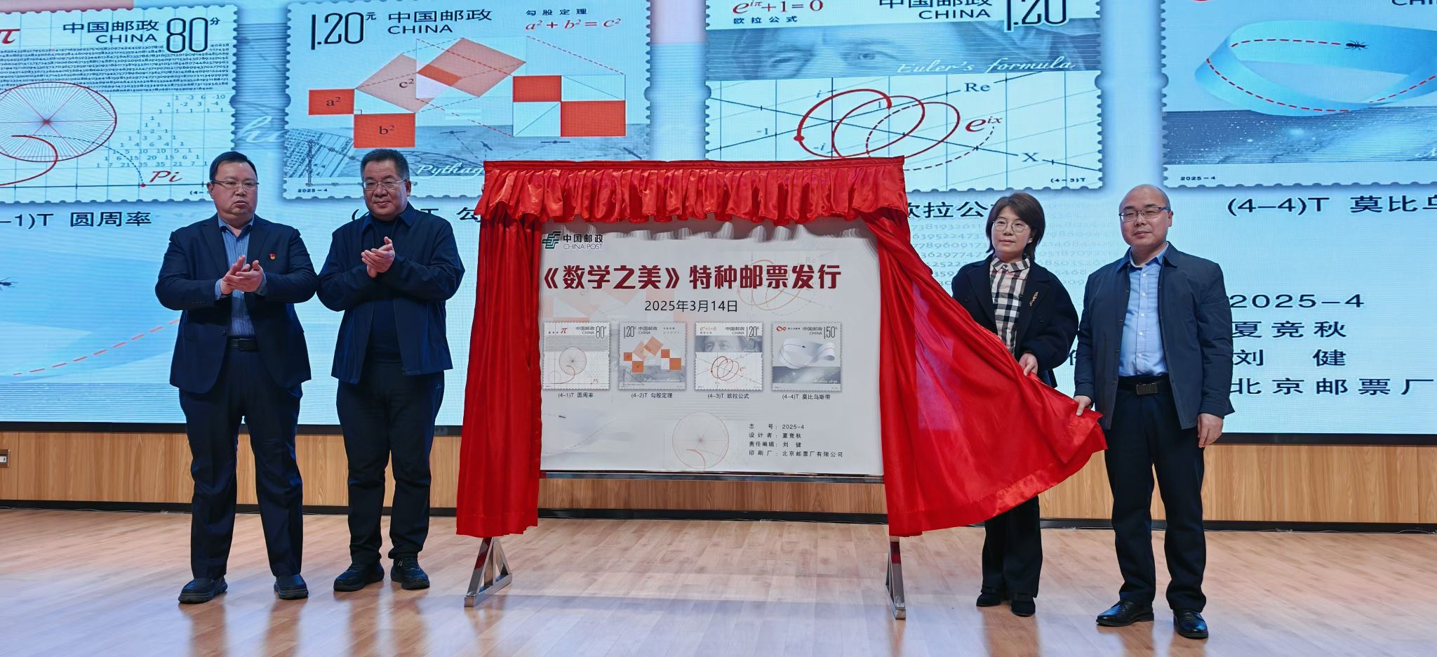 靳滨、纪卫华、毋海根、马荣兴共同为《数学之美》特种邮票揭幕。