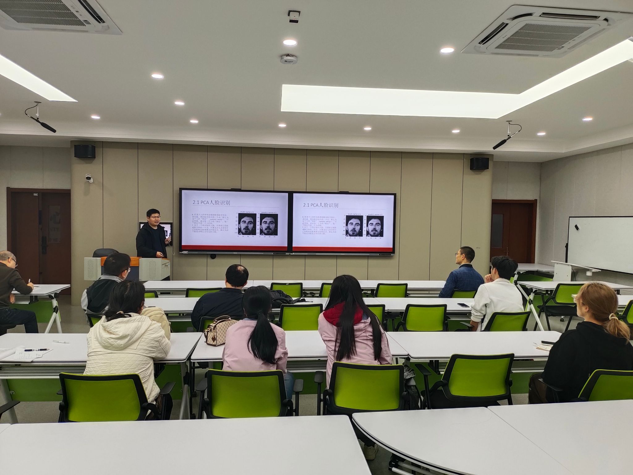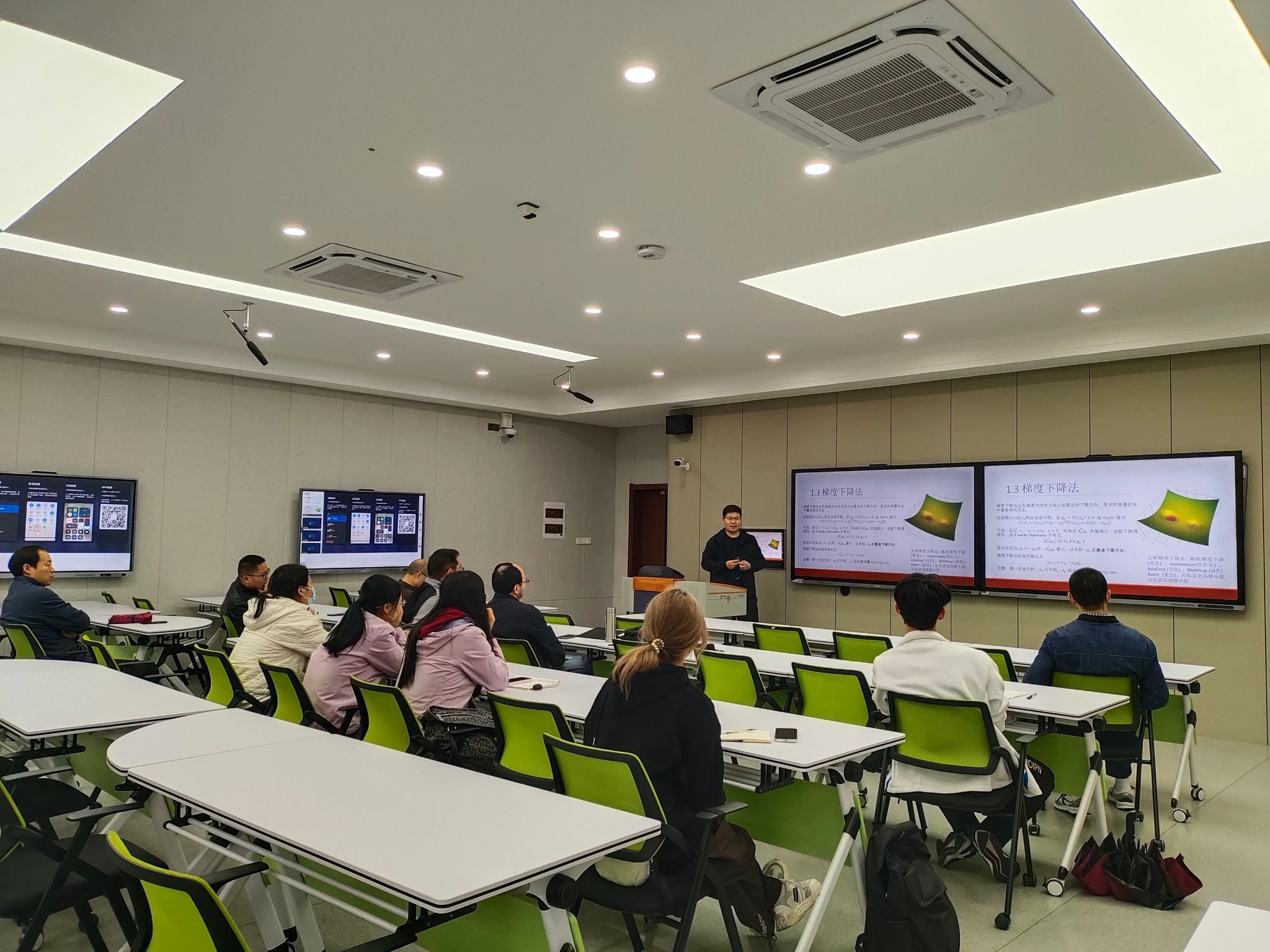 本网讯(通讯员 刘红海)10月17日-10月18日,中国科学院空间应用中心助理研究员、副主任设计师徐金中博士应邀来院访问交流。17日下午,徐金中于3205教室为数学与信息科学学院师生做了题为《人工智能中的数学:智能世界的引擎》的学术报告,报告从人工智能这一快速发展的领域入题,展现了数学驱动整个智能世界轰鸣向前的核心引擎作用、数学与人工智能的融合发展以及数学在人工智能发展中的基础性作用。徐金中博士以通俗易懂的例子诠释、拆解数学与人工智能的联系,揭示了人工智能的基本数学原理,院长毋海根、副院长牛海峰与学院部分师生代表参加了报告会。