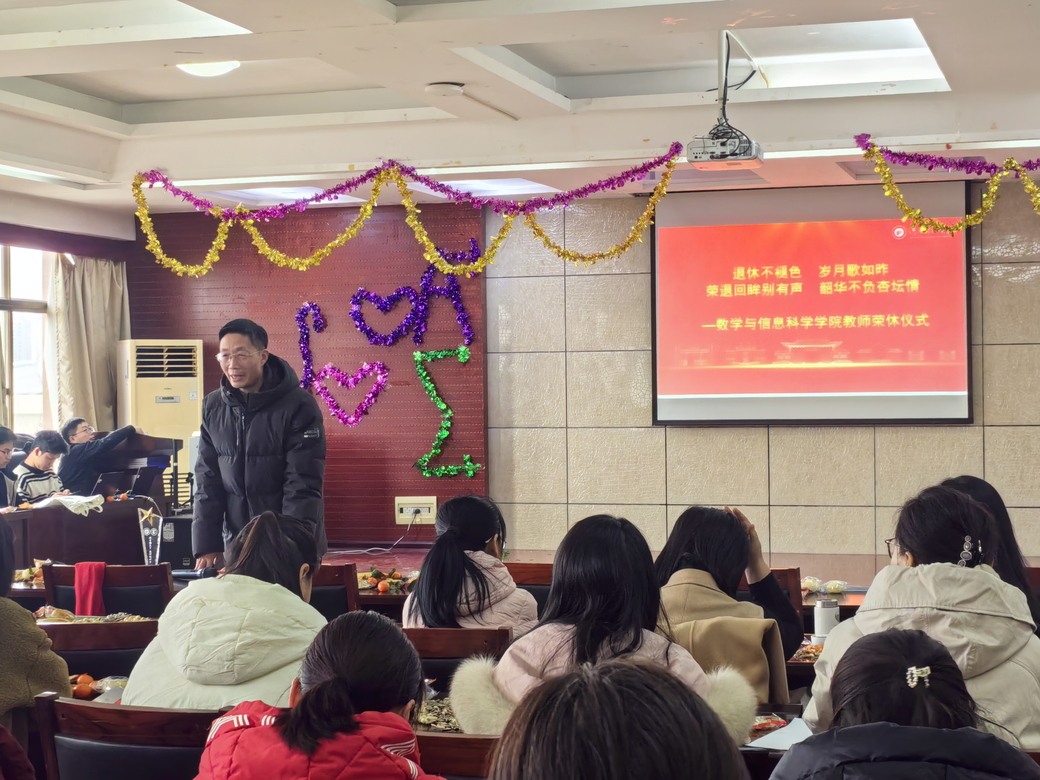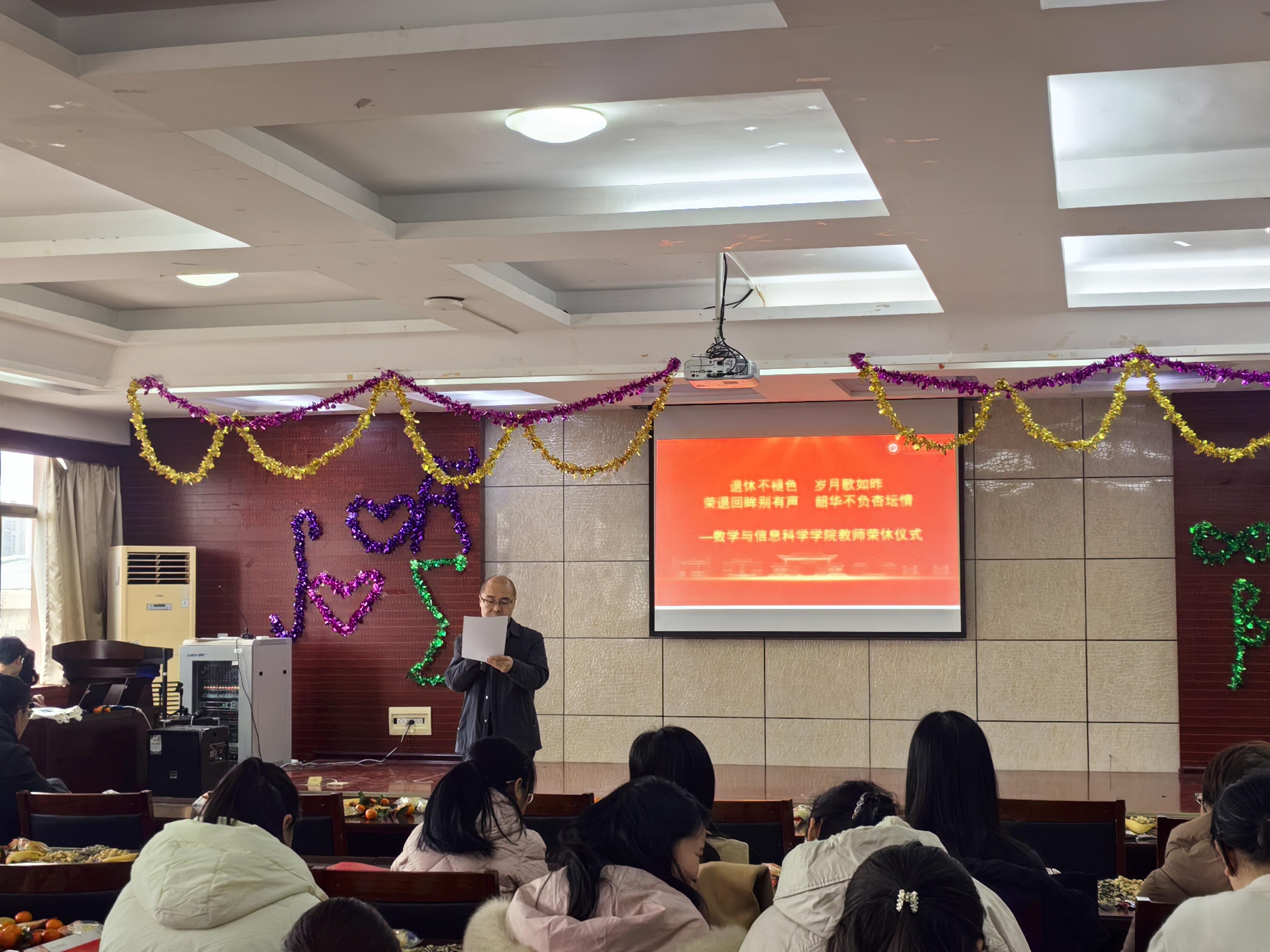 随后,毋海根院长详细介绍了五位退休教师的工作履历,带领现场师生重温了他们的育人岁月与责任担当,五位老师在教育教学岗位上深耕多年,凭借扎实的专业能力与热忱的育人之心,为学科建设与人才培养奠定坚实基础,为学院发展和学生成长作出了积极贡献。